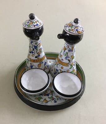 Umbria, Roccaporena: Set Da Tavola In Ceramica Con Oliera, Saliere E Vassoio