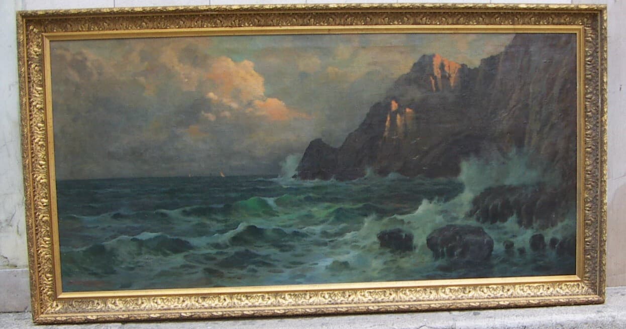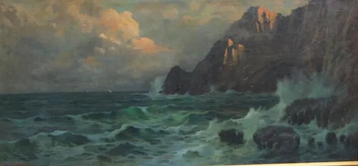 Grande Dipinto Decorativo Veduta Costiera Di Capri Ilio Giannaccini