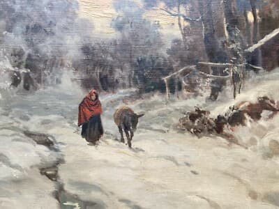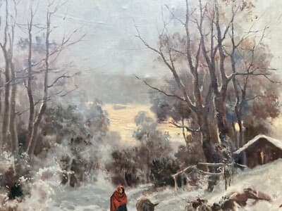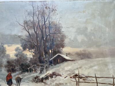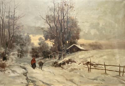 Grande Veduta Paesaggistica Di Ilio Giannaccini, 'Nevicata', Dipinto Certificato