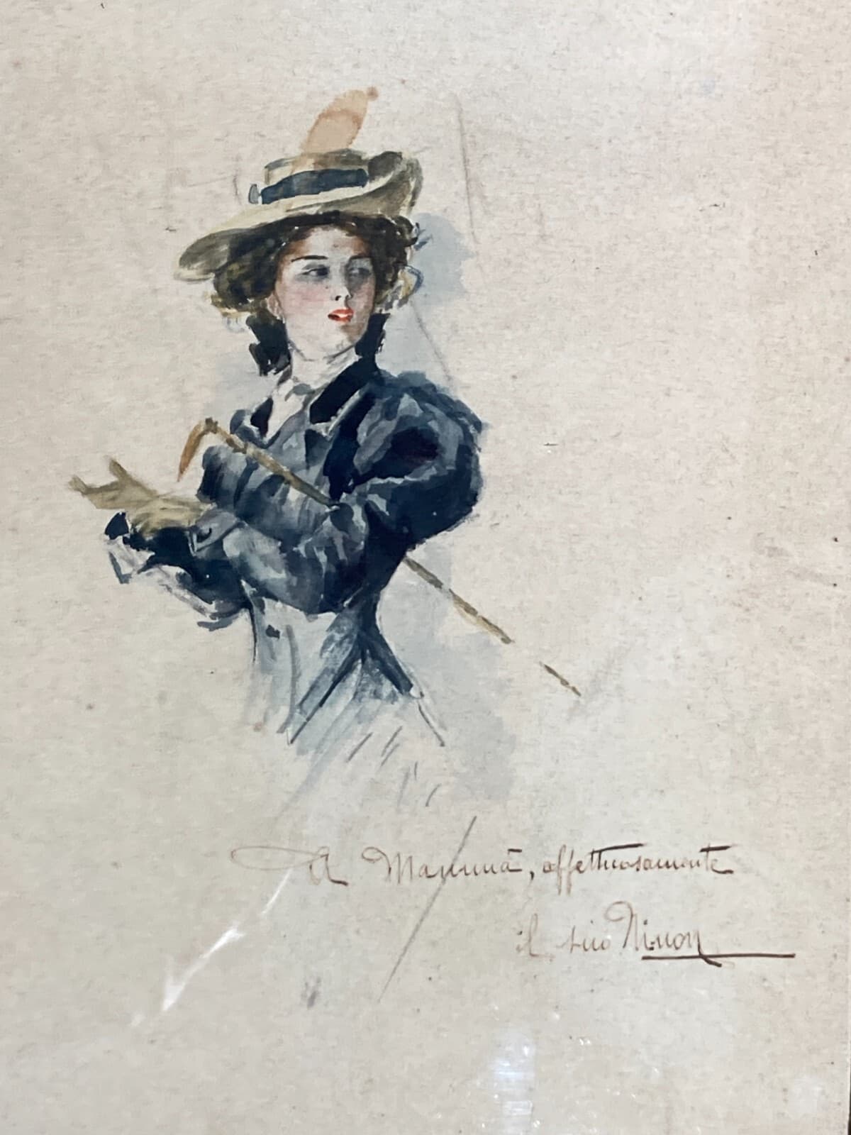 Ninon Vaccarella: Dipinto Ad Acquerello Di Signora In Stile Liberty Con Dedica