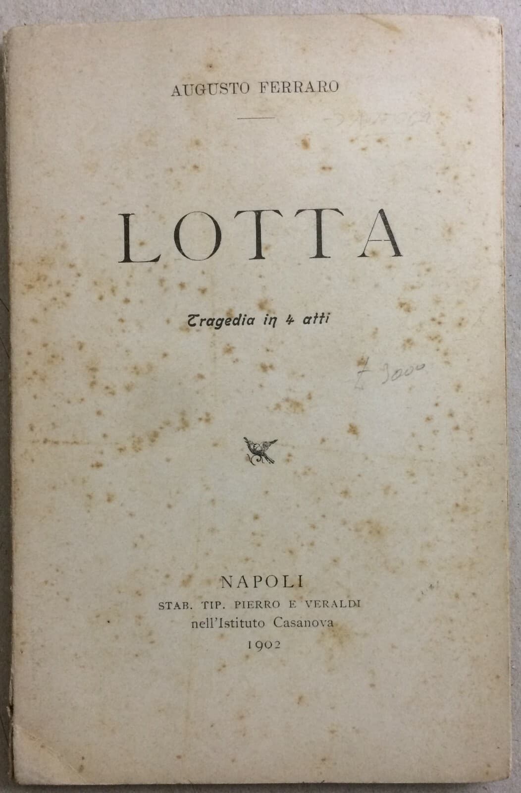 Lotta: Tragedia In 4 Atti Di Augusto Ferraro. Napoli, 1902