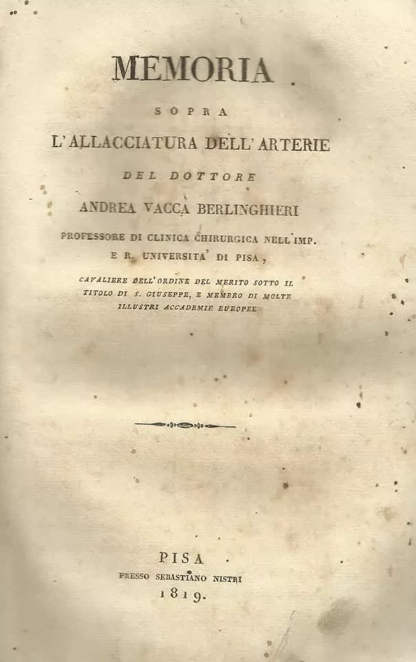 Medicina, Chirurgia, Angiologia: Allacciature Di Arterie Vaccà Berlinghieri (1819)