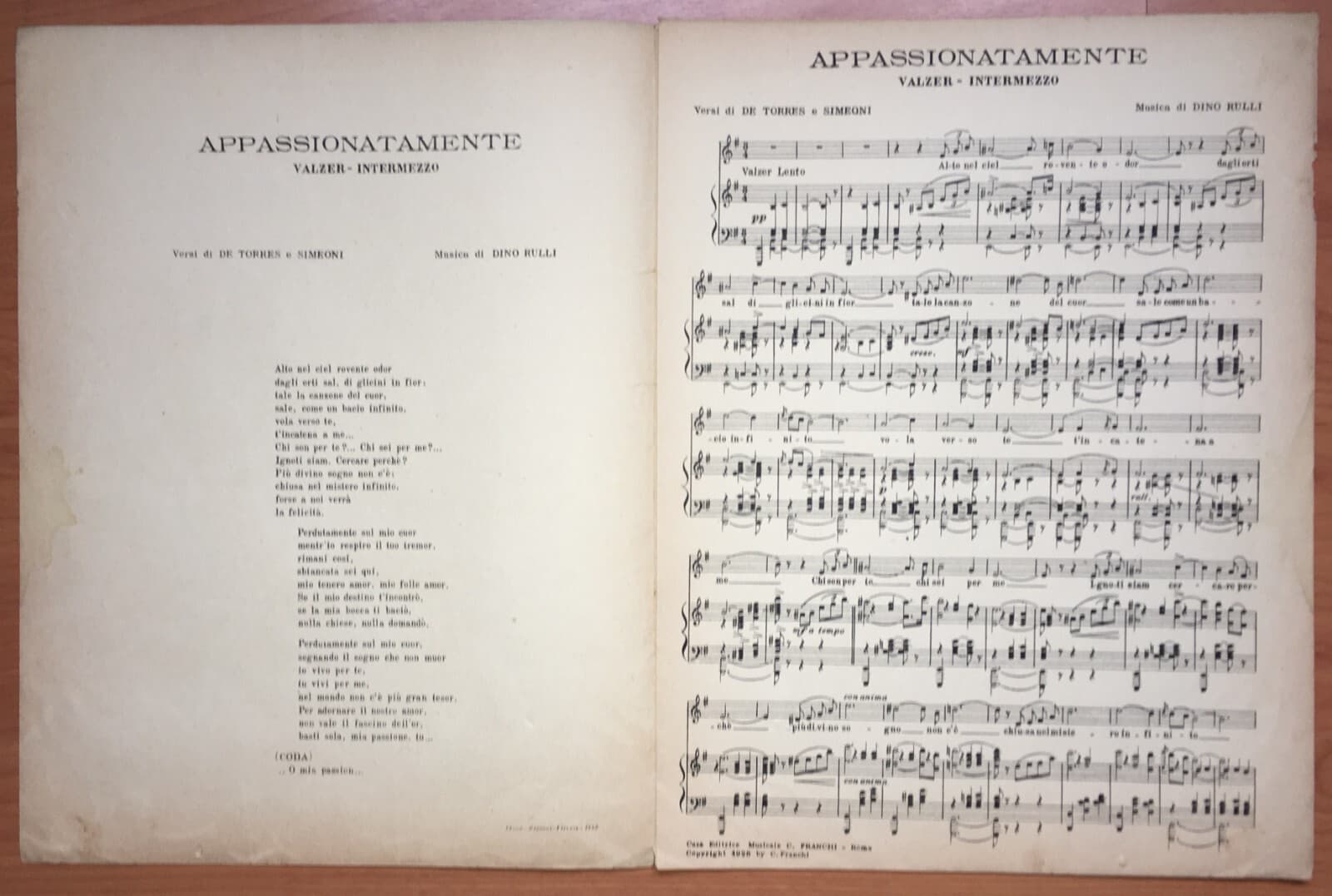 Spartito d'Epoca: Valzer Appassionatamente. Dino Rulli, Felix, 1945