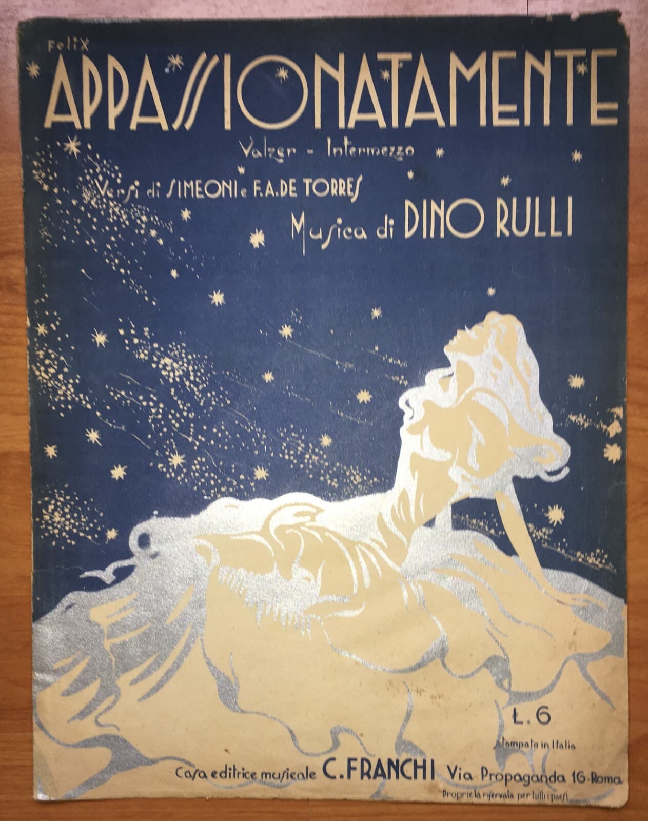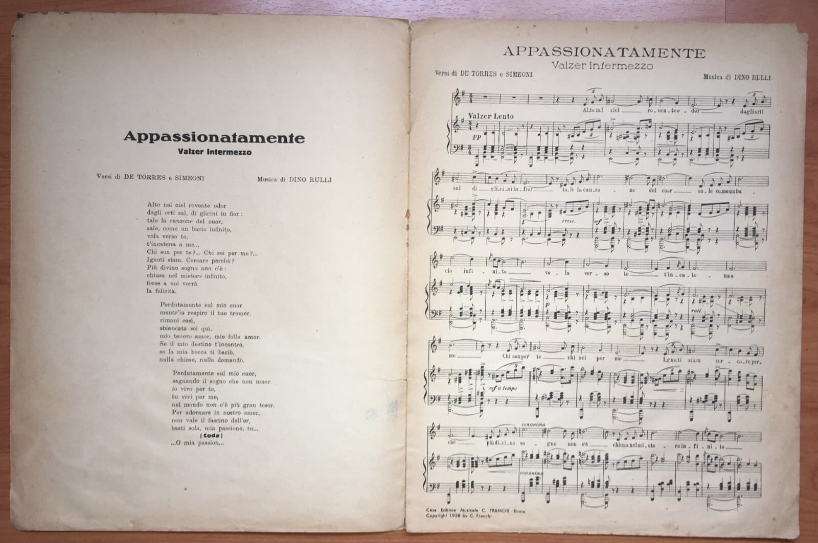 Appassionatamente Valzer Intermezzo Spartito Musicale Illustrato Dino Rulli, 1941