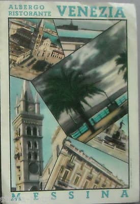 Sicilia, Messina: Albergo Ristorante Venezia. Etichetta Pubblicitaria Con Vedute