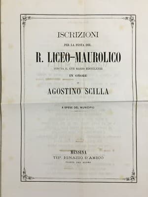 Sicilia, Messina, Scuole: Liceo Maurolico Agostino Scilla, 1868, Rara Edizione