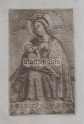 Antica Stampa Popolare Devozionale Madonna Con Bambino Monastero Maria Maddalena