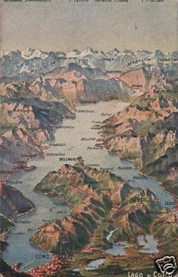 Como, Lago, Montagne: Cartolina Con Mappa Geografica Da Collezione d'Epoca