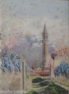 Lecco: Campanile Di S. Nicolò E Resegone, Veduta d'Epoca Da Ramorino