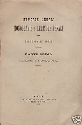 Giuseppe M. Bosco, Memorie Legali, Monografie E Arringhe Penali (Napoli, 1883)