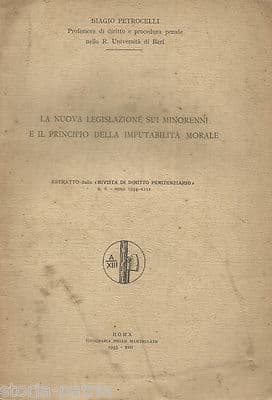 Puglia, Bari: Biagio Petrocelli, La Nuova Legislazione Sui Minorenni E Il Principio Della Imputabilità Morale, 1935