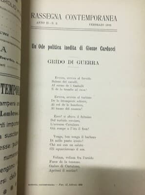 Rassegna Contemporanea, Roma, Febbraio 1909 Carducci, Pirandello, Terremoto Sicilia E Calabria
