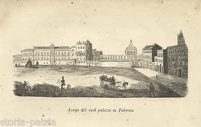 Sicilia, Palermo, Palazzo Reale, Antica Prospettiva Animata, Xilografia Del XIX Secolo