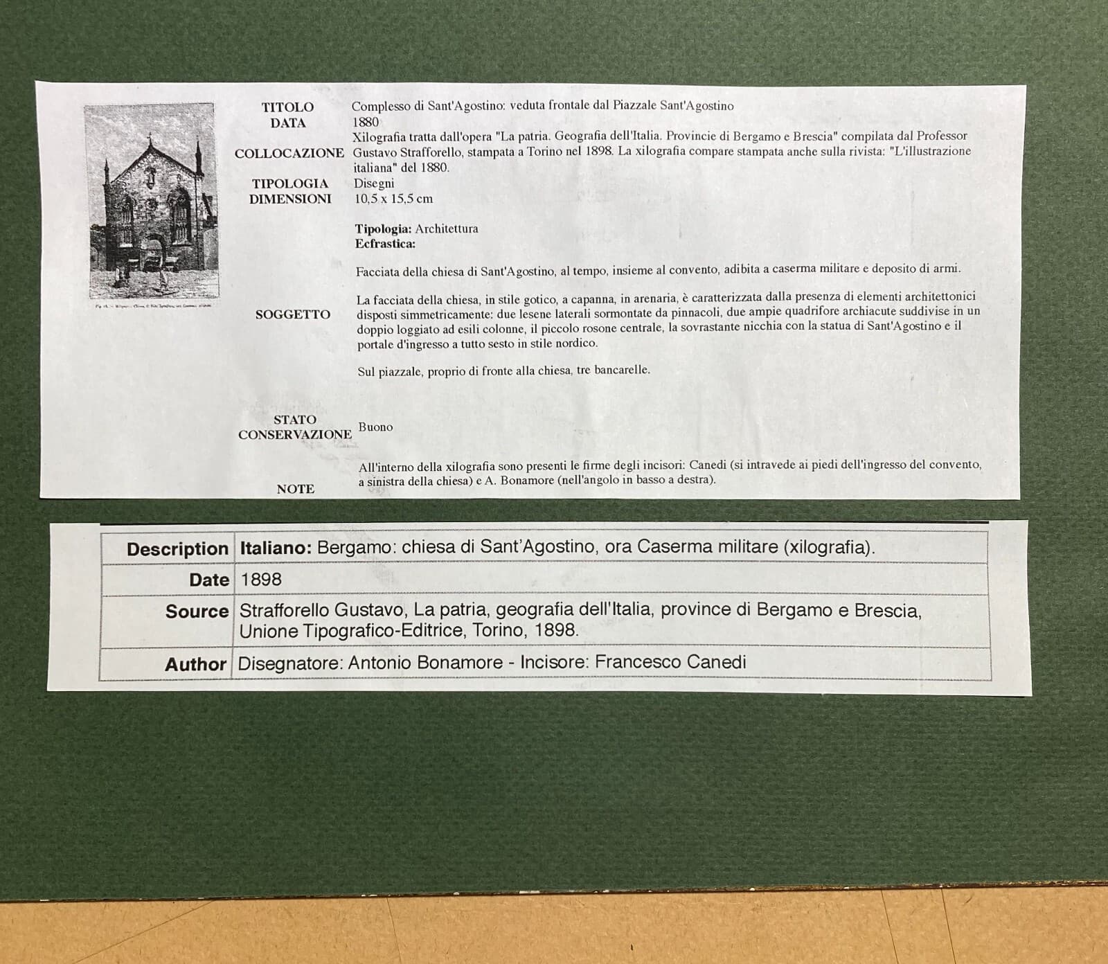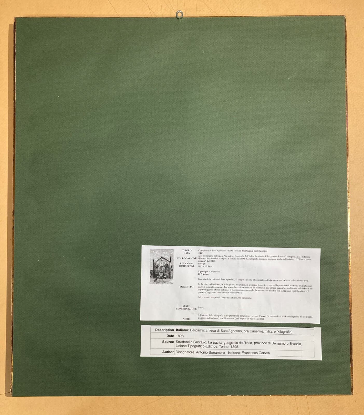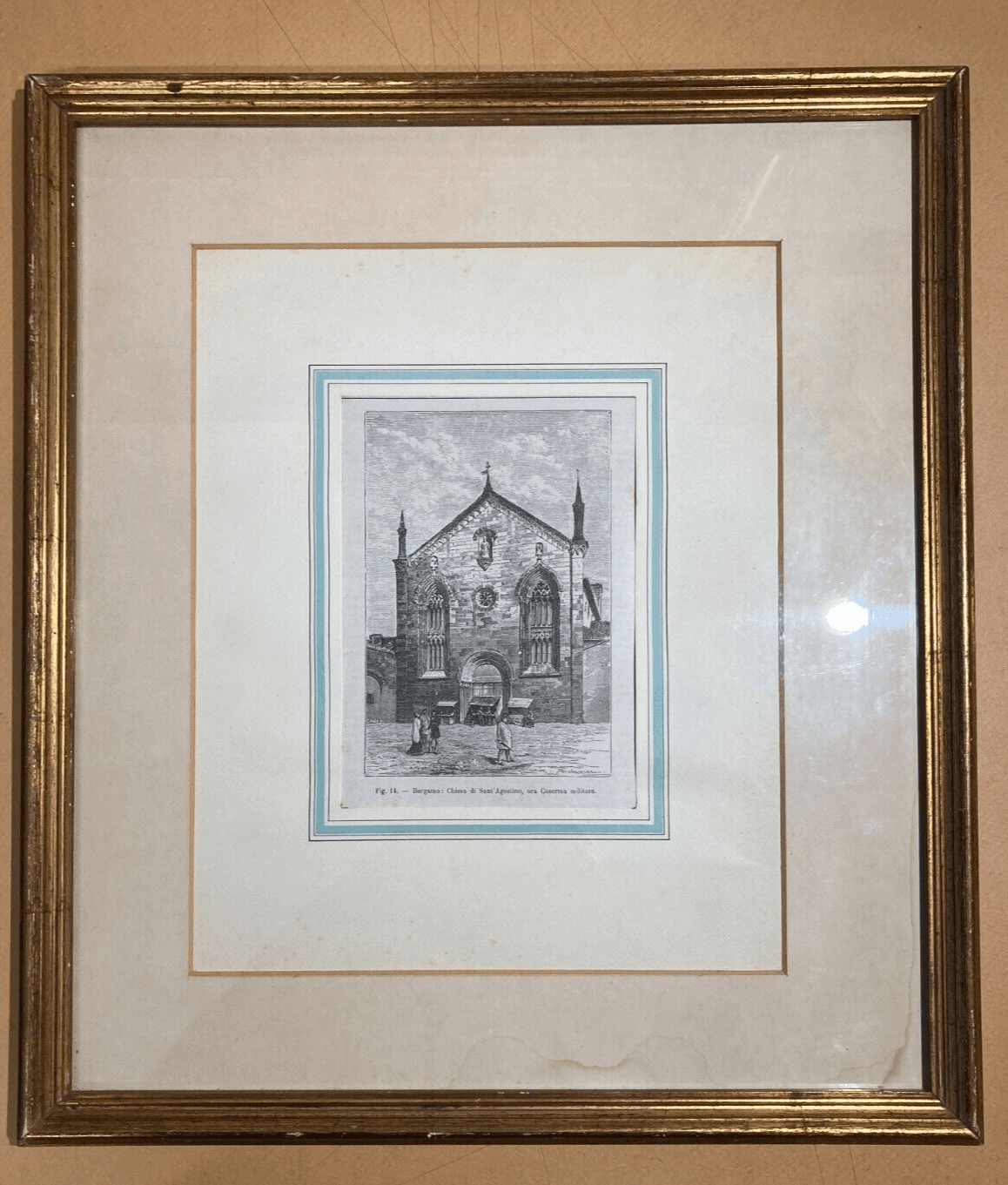 Bergamo Antica Stampa Chiesa Di Sant'Agostino Prospettiva Architettonica Animata