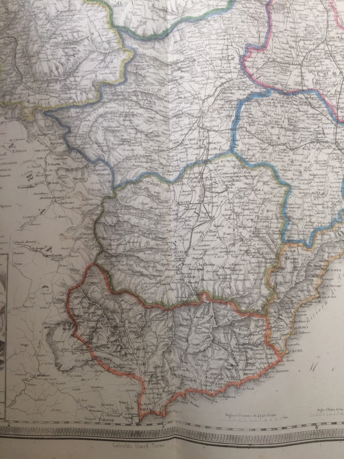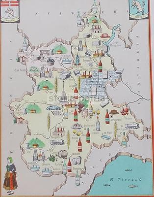 Piemonte, Torino, Cuneo, Novara, Monte Bianco, Biella: Decorativa Cartografia d'Epoca