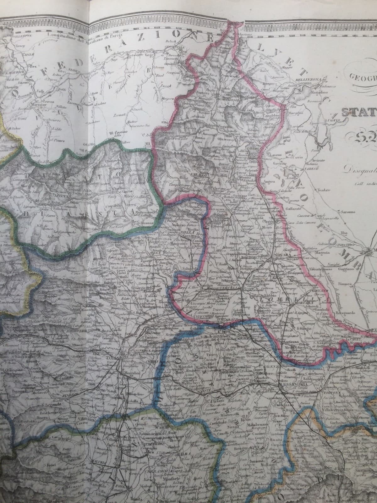 Alta Italia: Piemonte, Lombardia, Emilia, Aosta, Liguria. Mappa Geografica d'Epoca