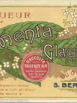 Alpi, Gran S. Bernardo, Liquori, Menta Glaciale, Tonico Digestivo, Etichetta d'Epoca