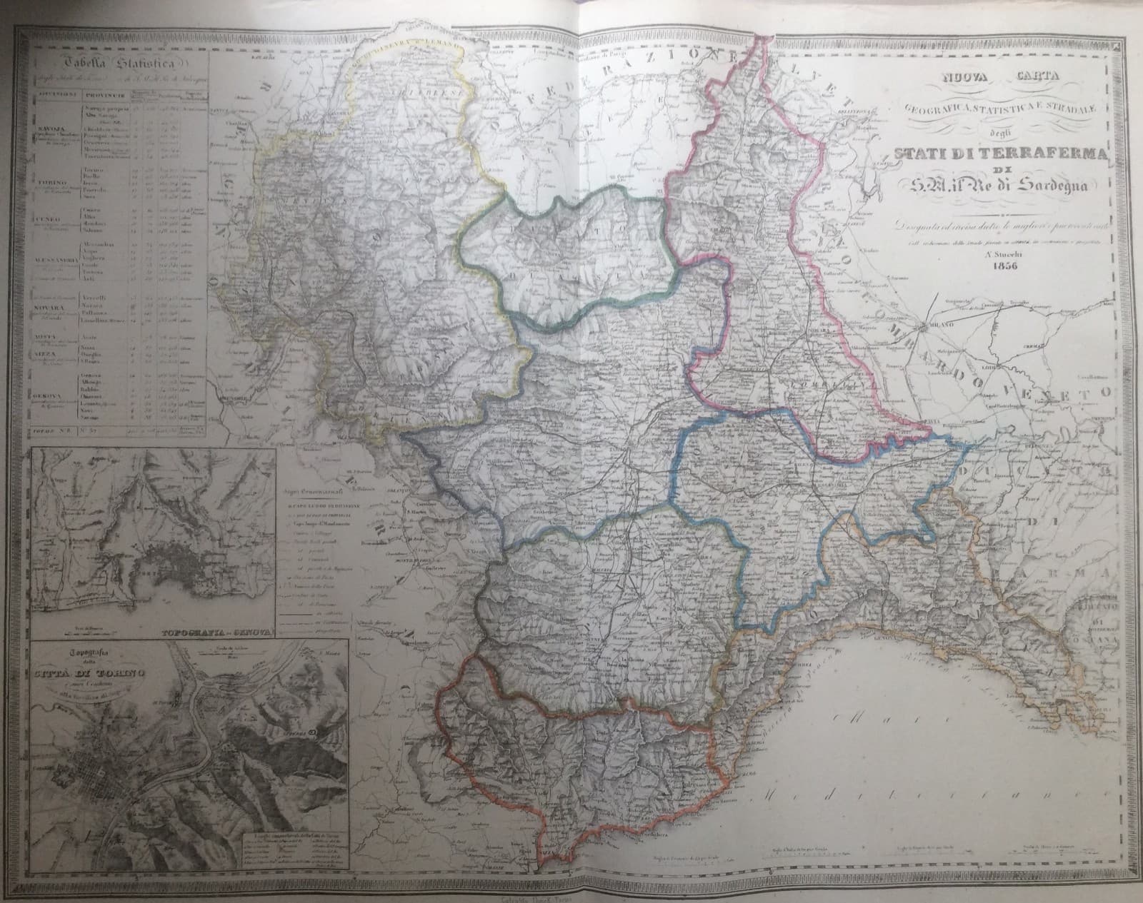 Stati Sardi: Piemonte, Liguria, Torino, Genova, Aosta, Nizza. Ferrovie, Cartografia, 1856