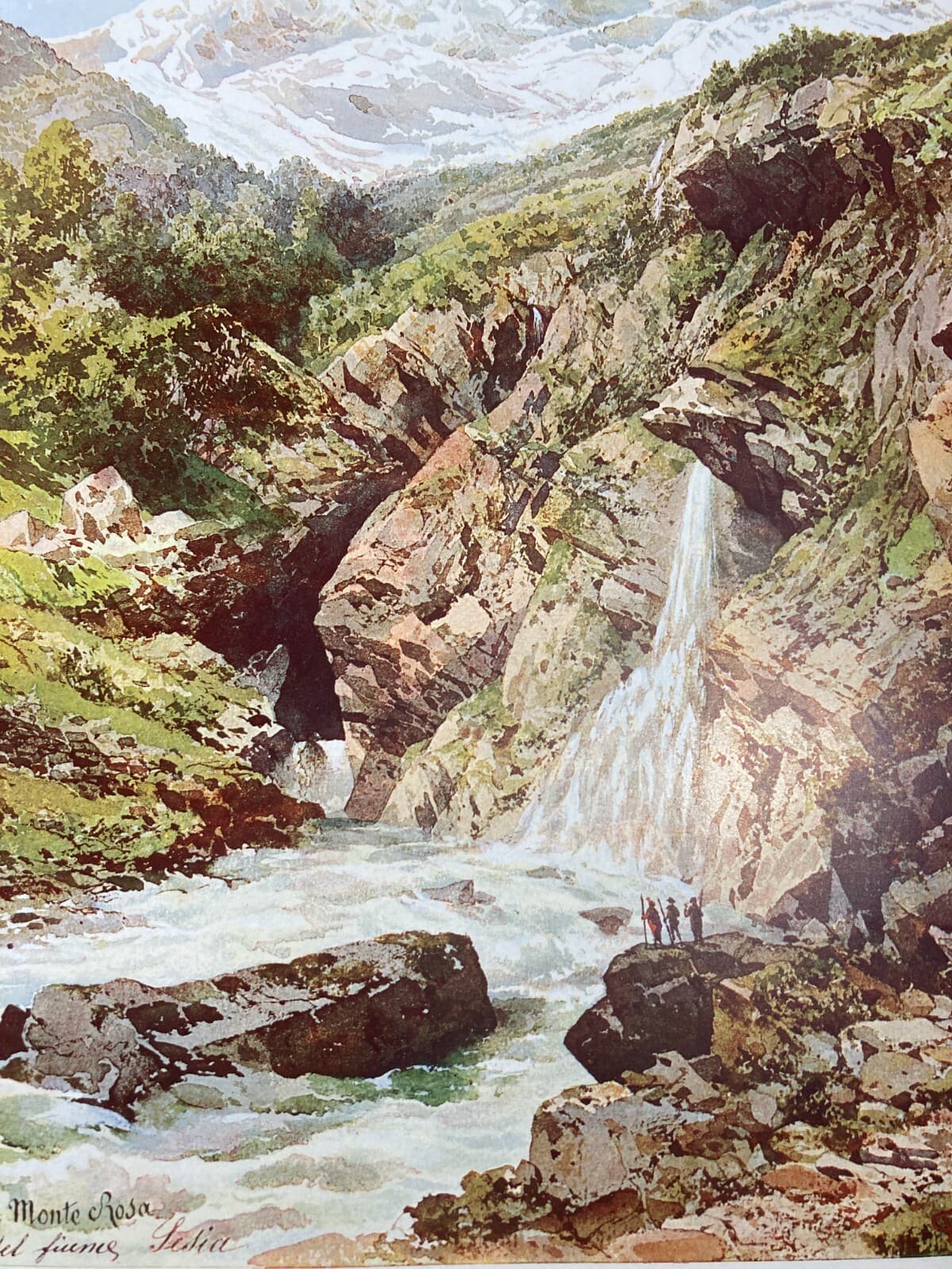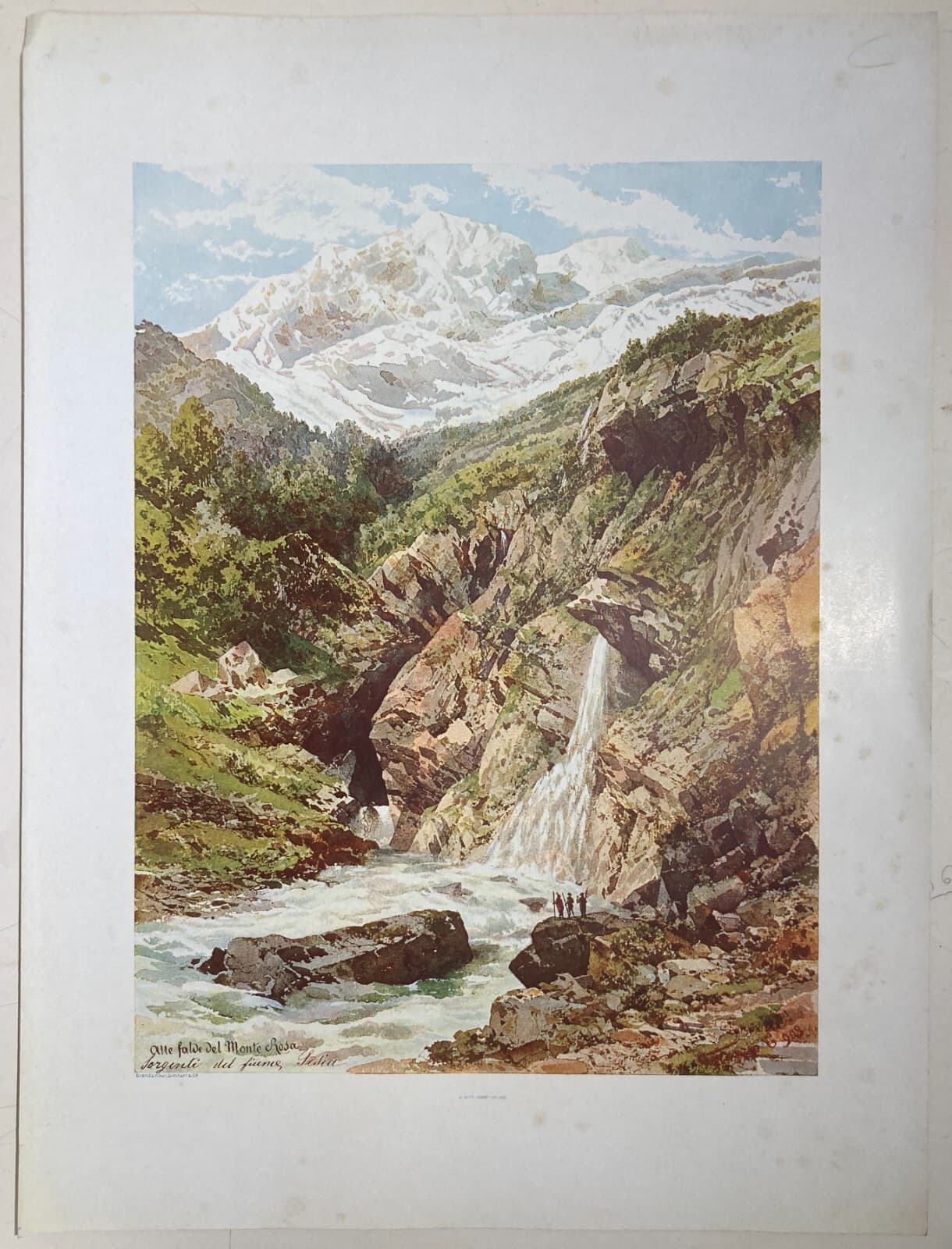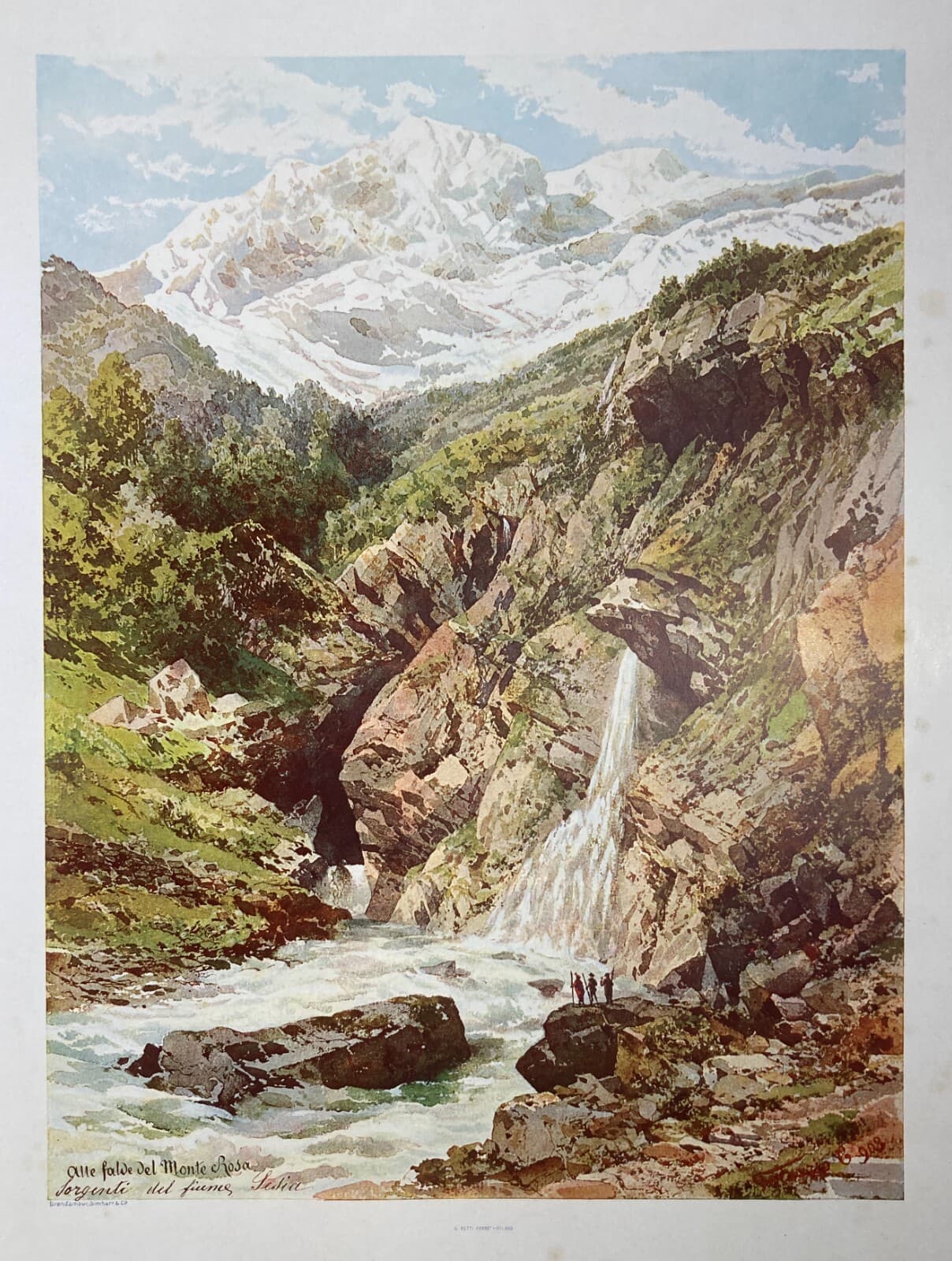 Valle d'Aosta, Monte Rosa: Sorgenti Del Fiume Sesia. Antica Stampa A Colori Di Carlo Ferrario