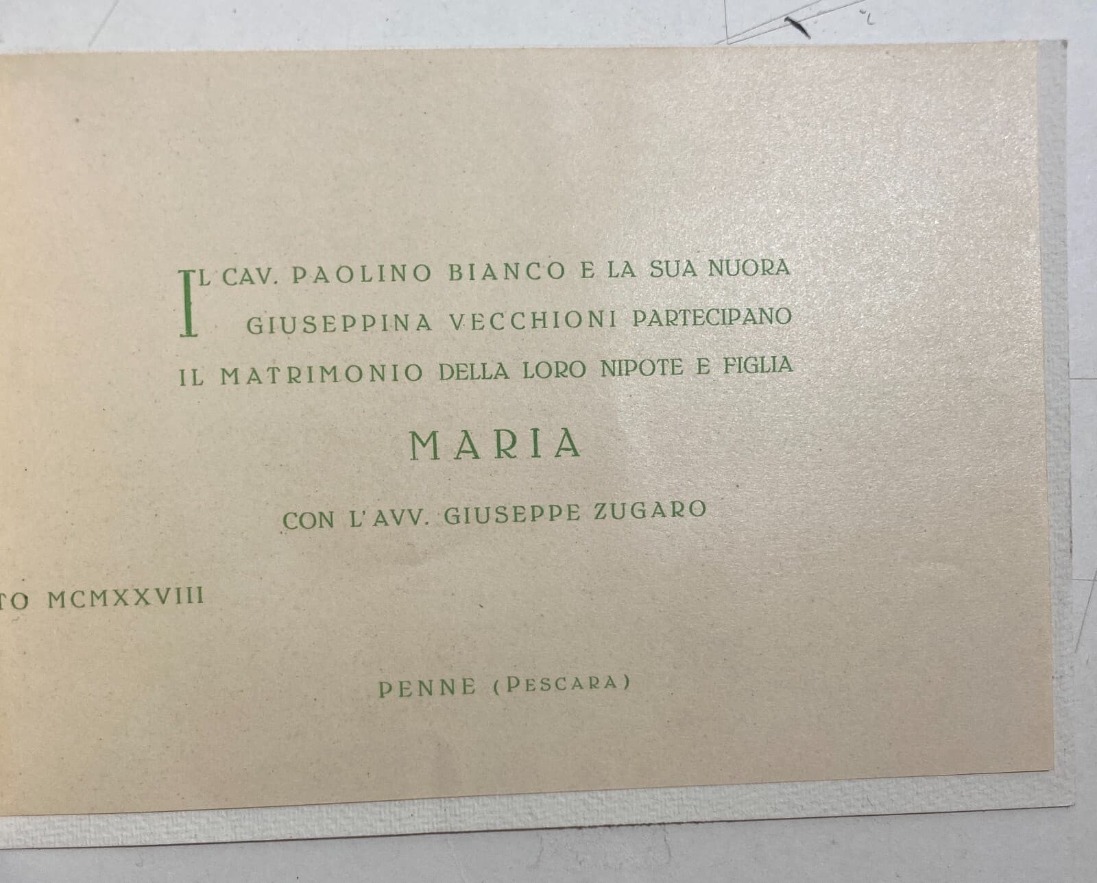 Abruzzo: Invito Per Nozze, Aquila Penne (Zugaro Bianco), 1928