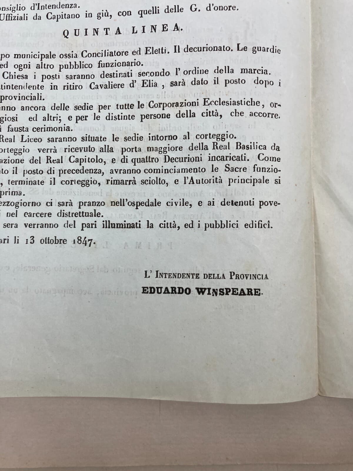 Puglia Bari Borboni Festeggiamenti Per Il Compleanno Della Regina 1843
