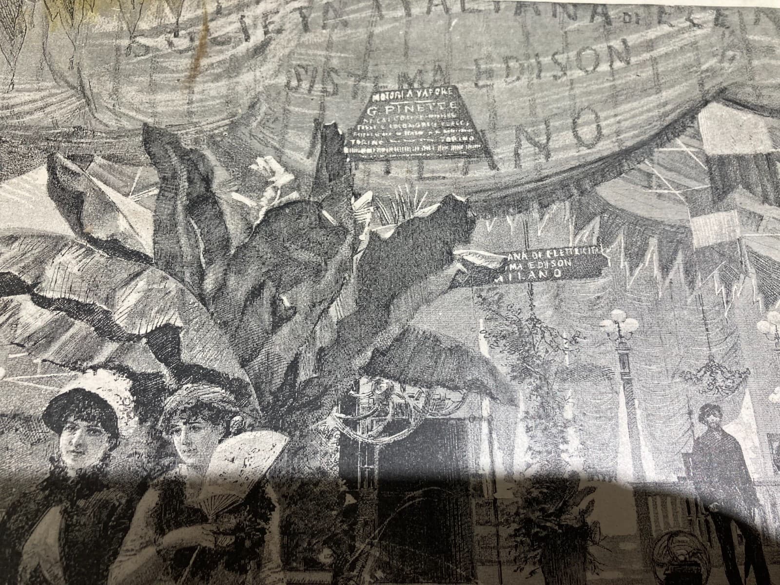 Esposizione Dell'Elettricità A Torino: Antica Stampa Dei Motori Pinette E Sistema Edison