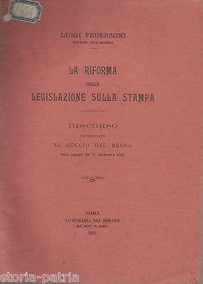 La Riforma Della Legislazione Sulla Stampa: Discorso Di Luigi Federzoni Al Senato (1925)