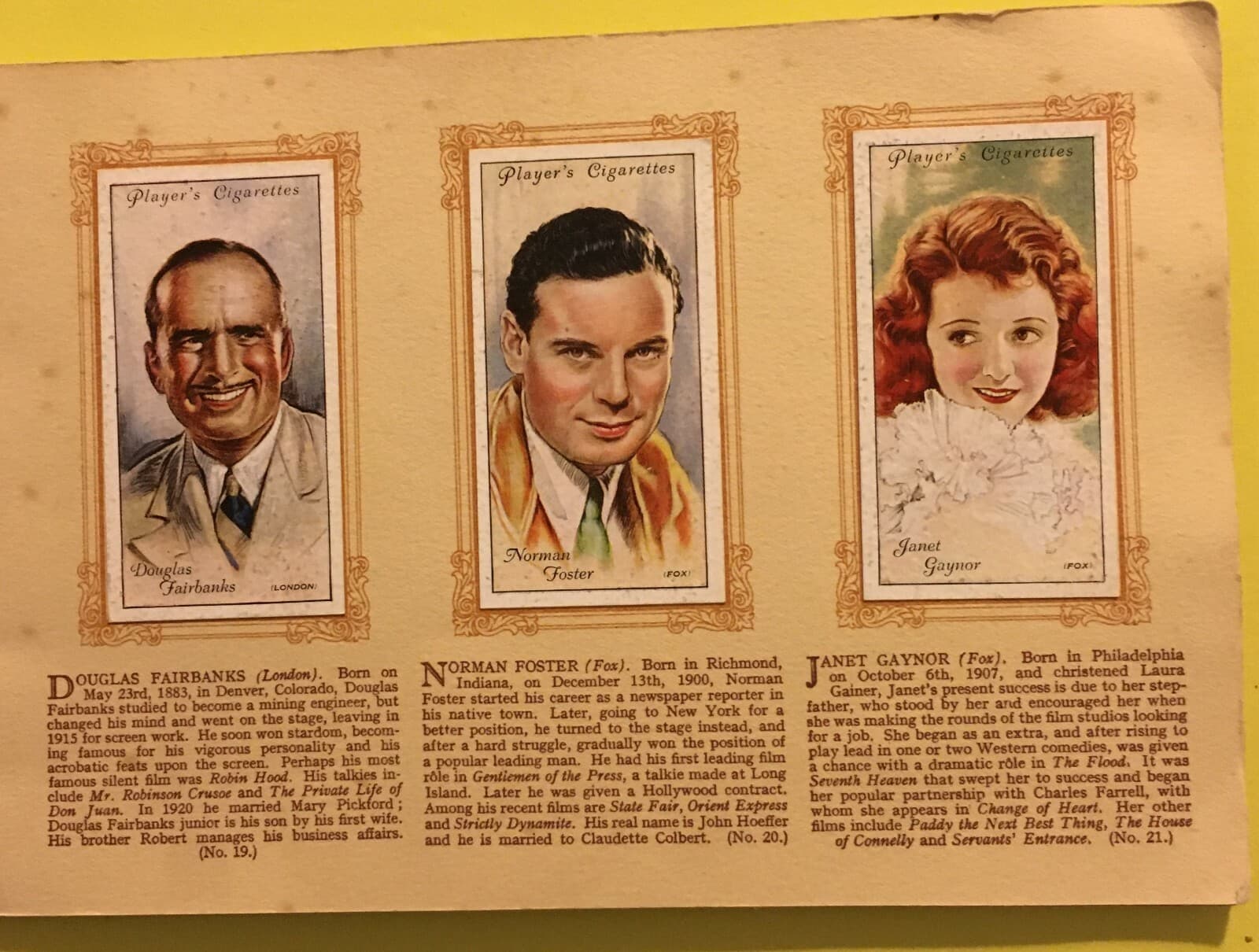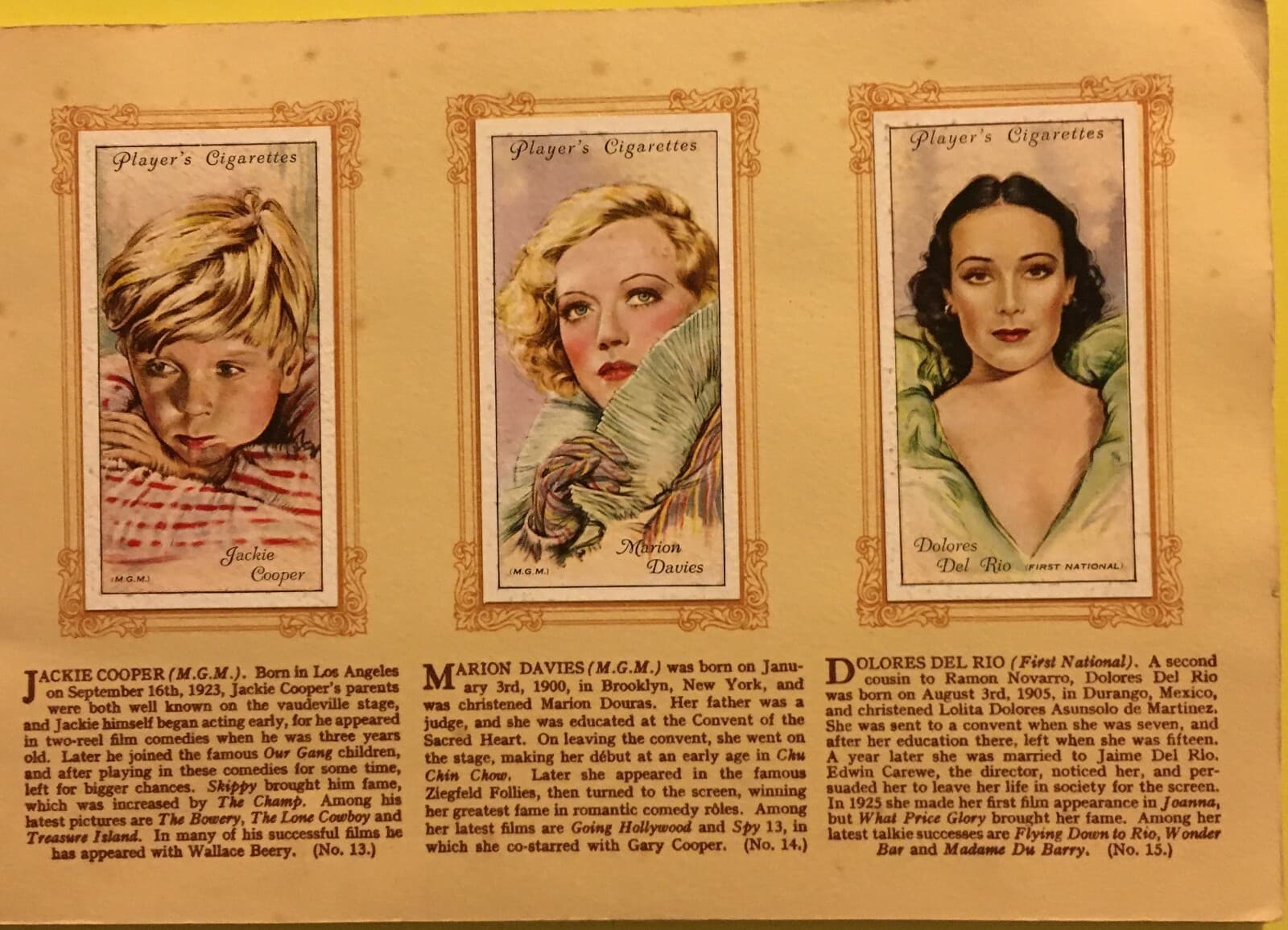 Cinema, Attori, Attrici, Film, Figurine Pubblicitarie, Raro Album, John Player'S, 1930 Circa