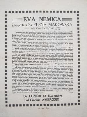 Cinema Ambrosio, Elena Makowska, Eva Nemica: Locandina Pubblicitaria, 1916