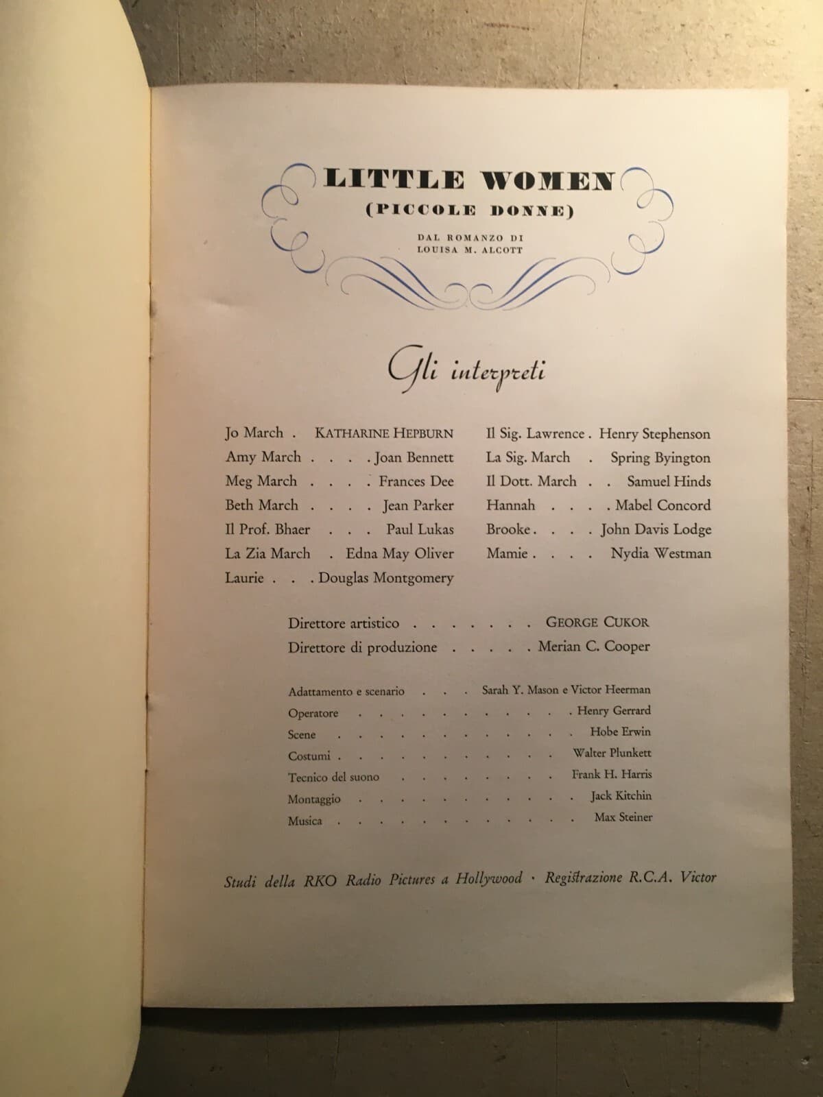 Venezia: Cinema Little Women (Piccole Donne). Alcott, Hepburn, RKO Hollywood, Lux Torino