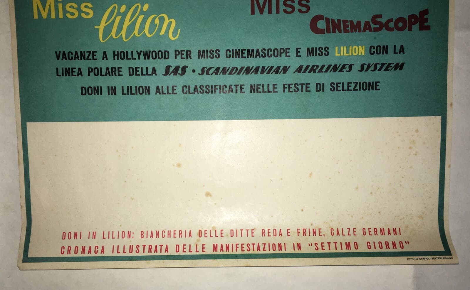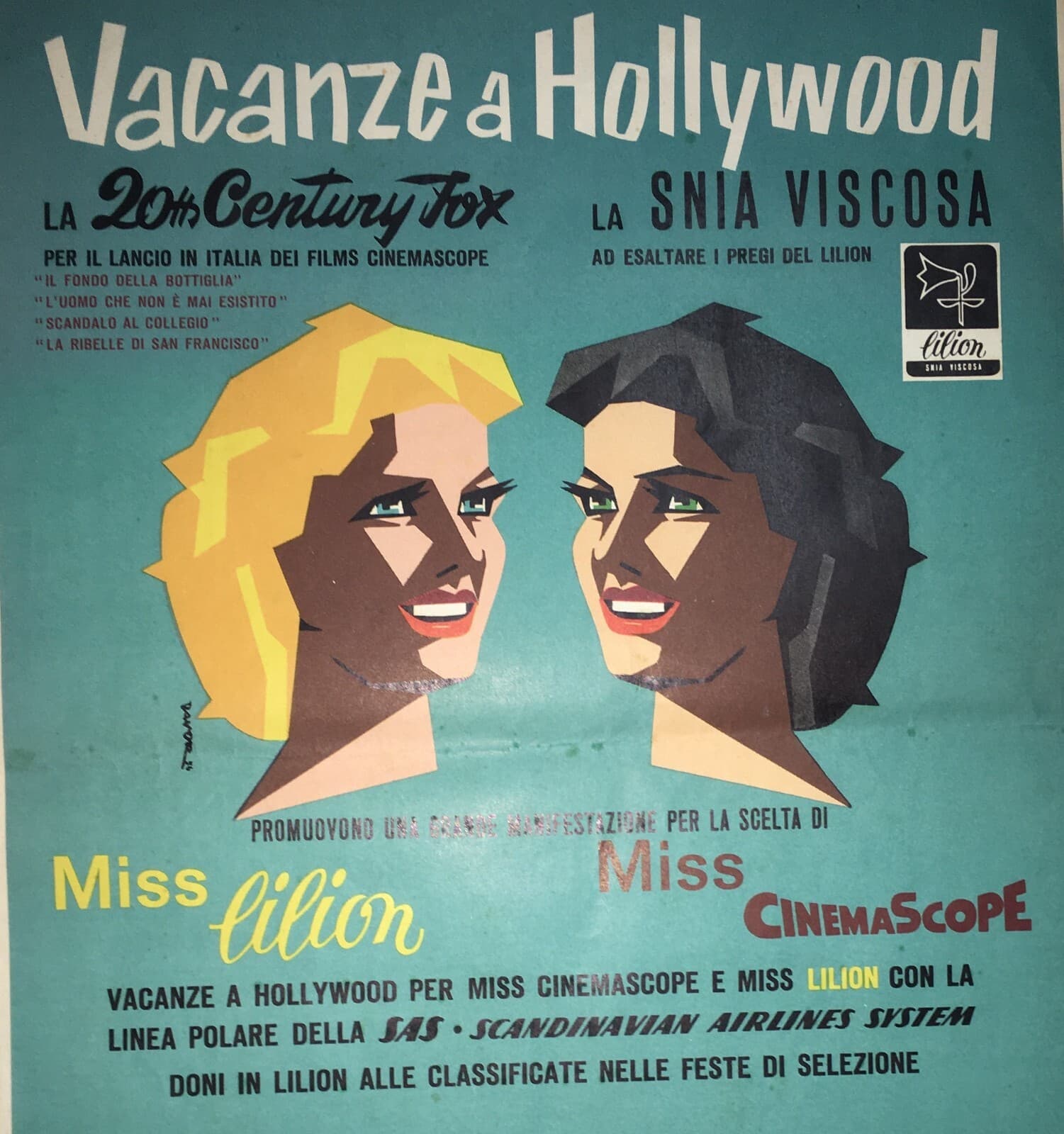 Cinema, Vacanze A Hollywood: Cinemascope, Snia Viscosa, Lilion. Locandina Pubblicitaria.