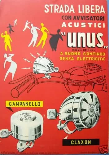 Cicli, Biciclette, Campanello, Claxon, Avvisatori Unus, Rara Locandina Pubblicitaria