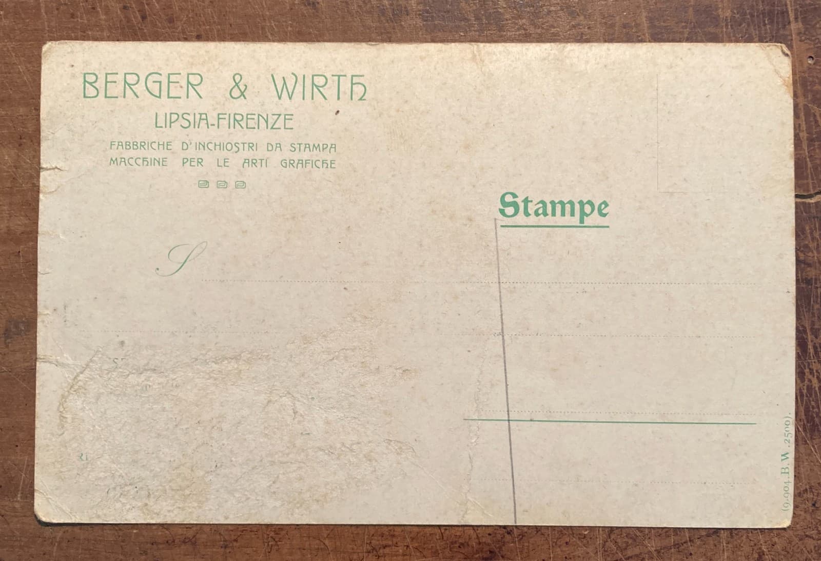 Tipografia, Inchiostri, Firenze, Lipsia: Berger & Wirth Antica Cartolina, Militaria