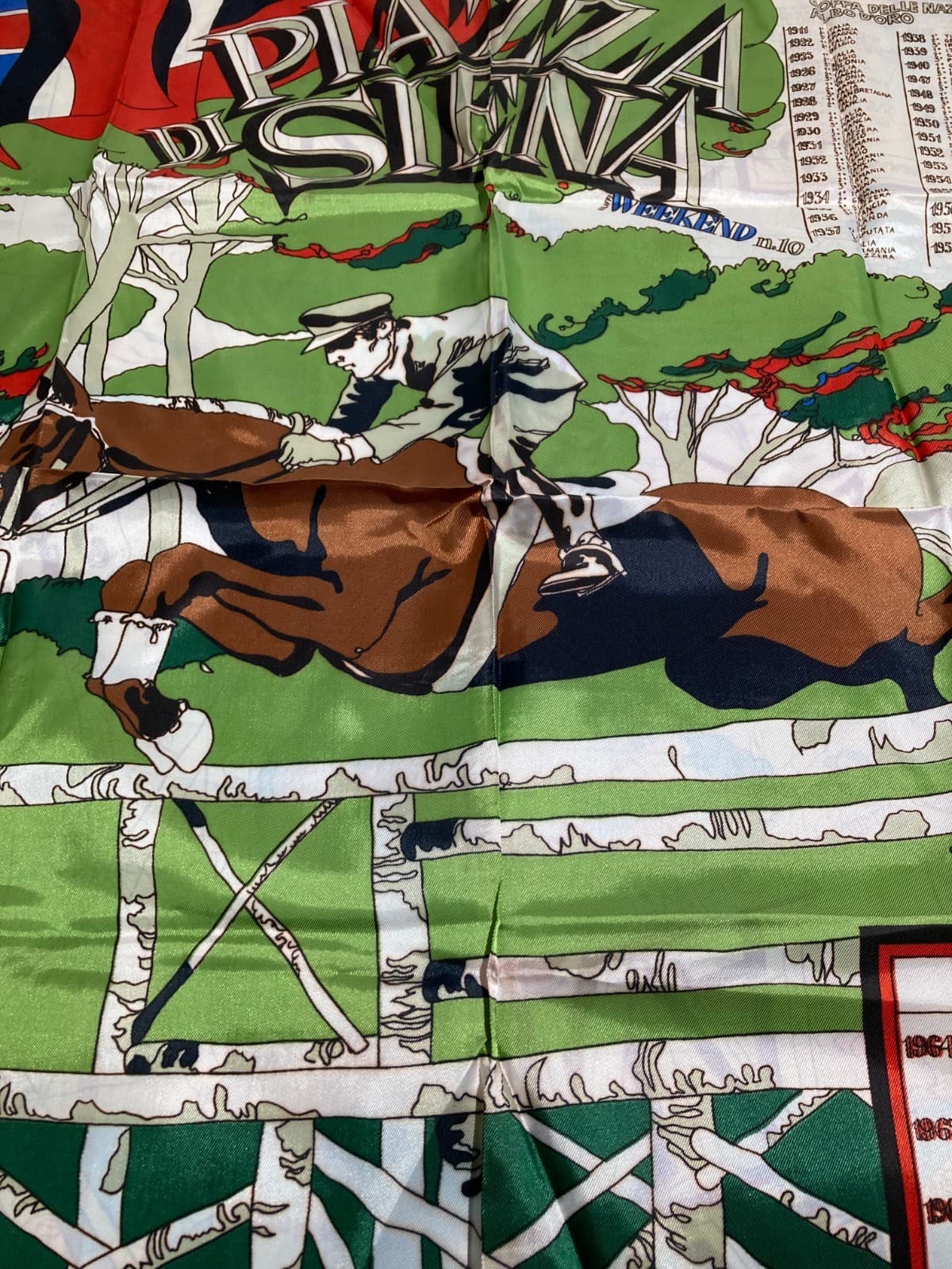 Equitazione, Cavalli E Palio Di Siena. Tessuto Pubblicitario Illustrato Da Rostagno