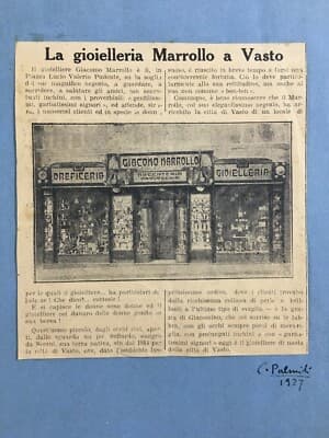 Abruzzo, Vasto: Oreficeria Marrollo. Ritaglio Di Giornale Con Recensione Di C. Palmili, 1927