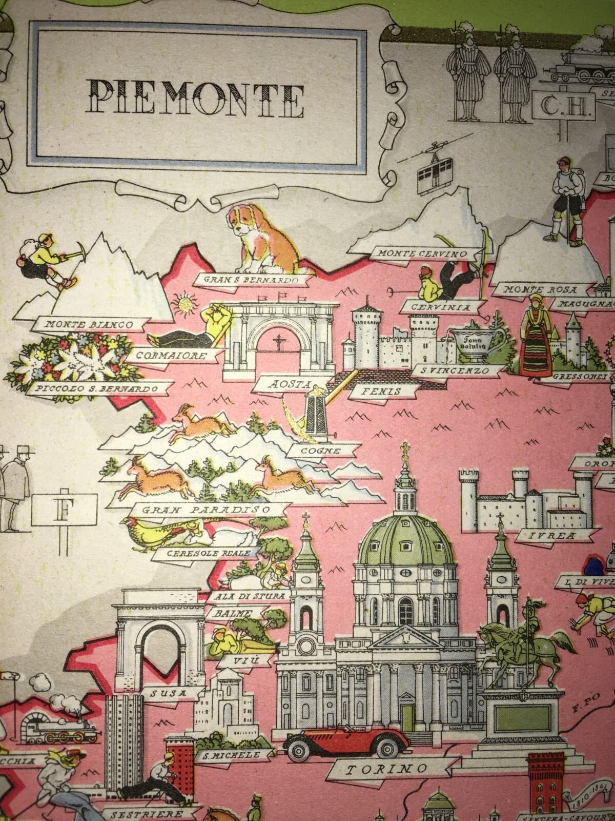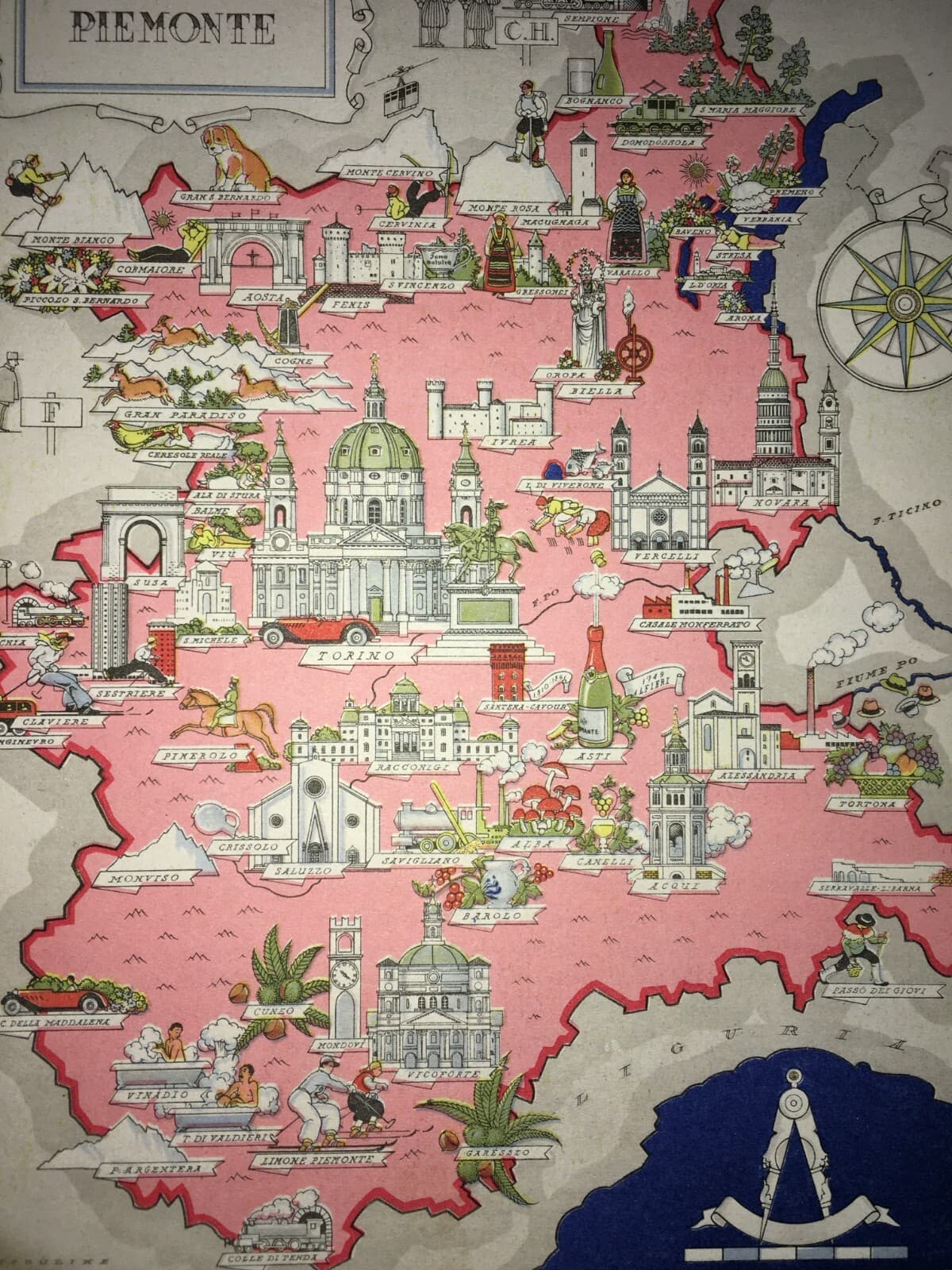 Arte, Folklore E Cartografia Del Piemonte: Mappa Di Vsevolode Nicouline Con Torino, Aosta E Novara