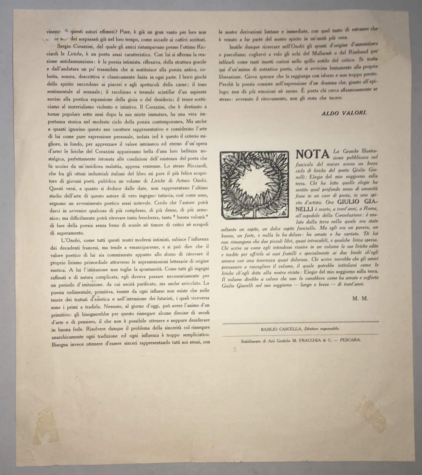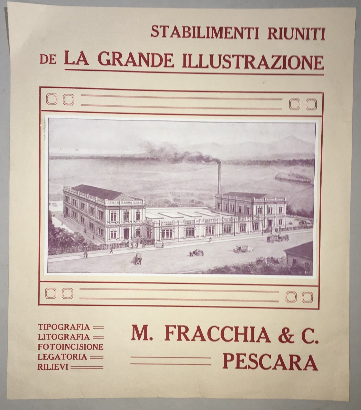 Abruzzo, Pescara. Antica Stampa Pubblicitaria Della Tipografia Fracchia. Veduta Animata Da Basilio Cascella