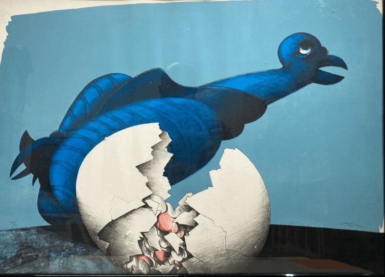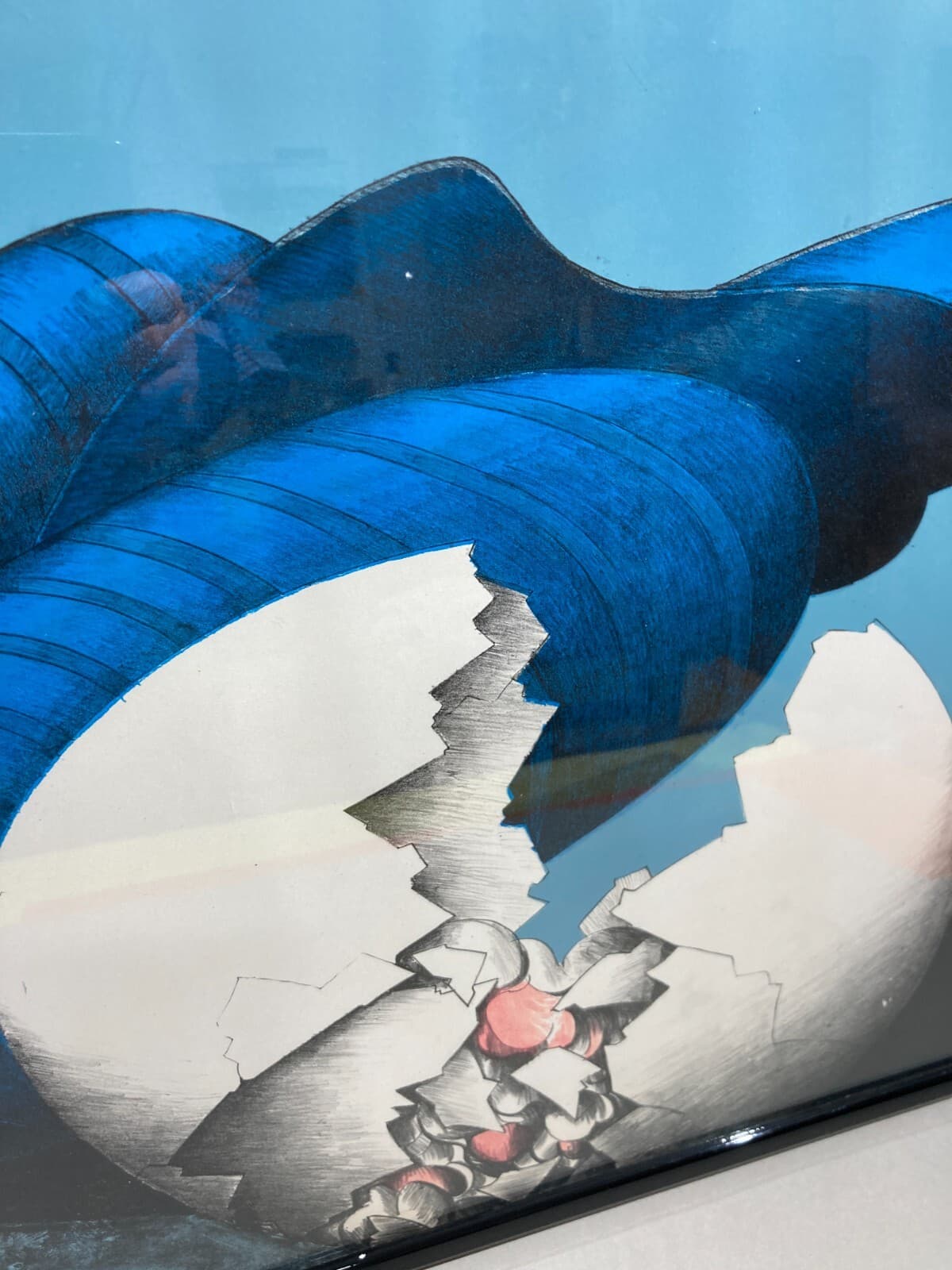 Arte Decorativa Del '900. Artista Messina. Inusuale Grafica Policroma. Uovo Schiuso.