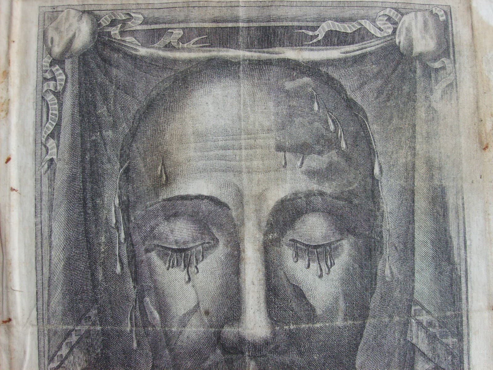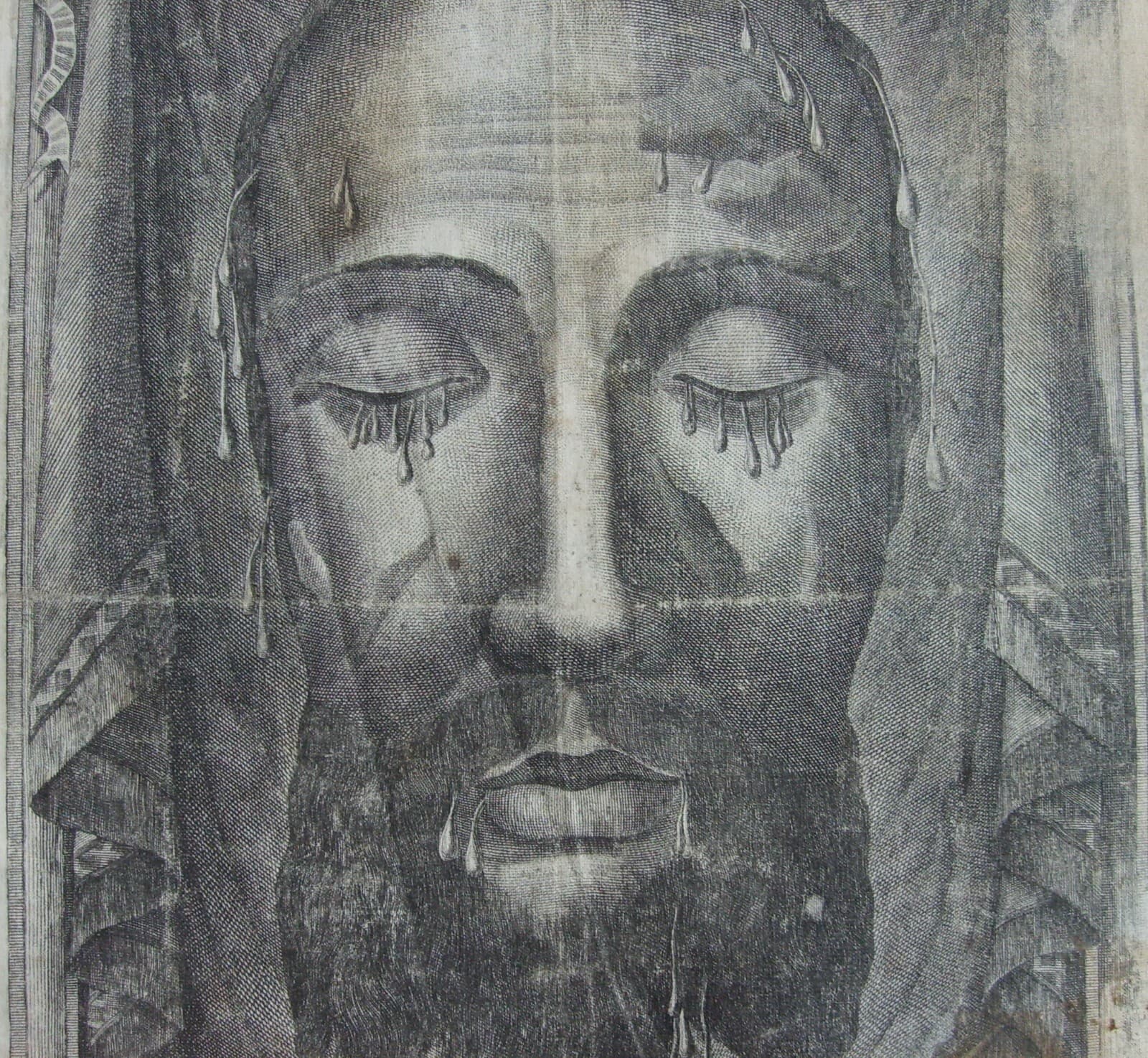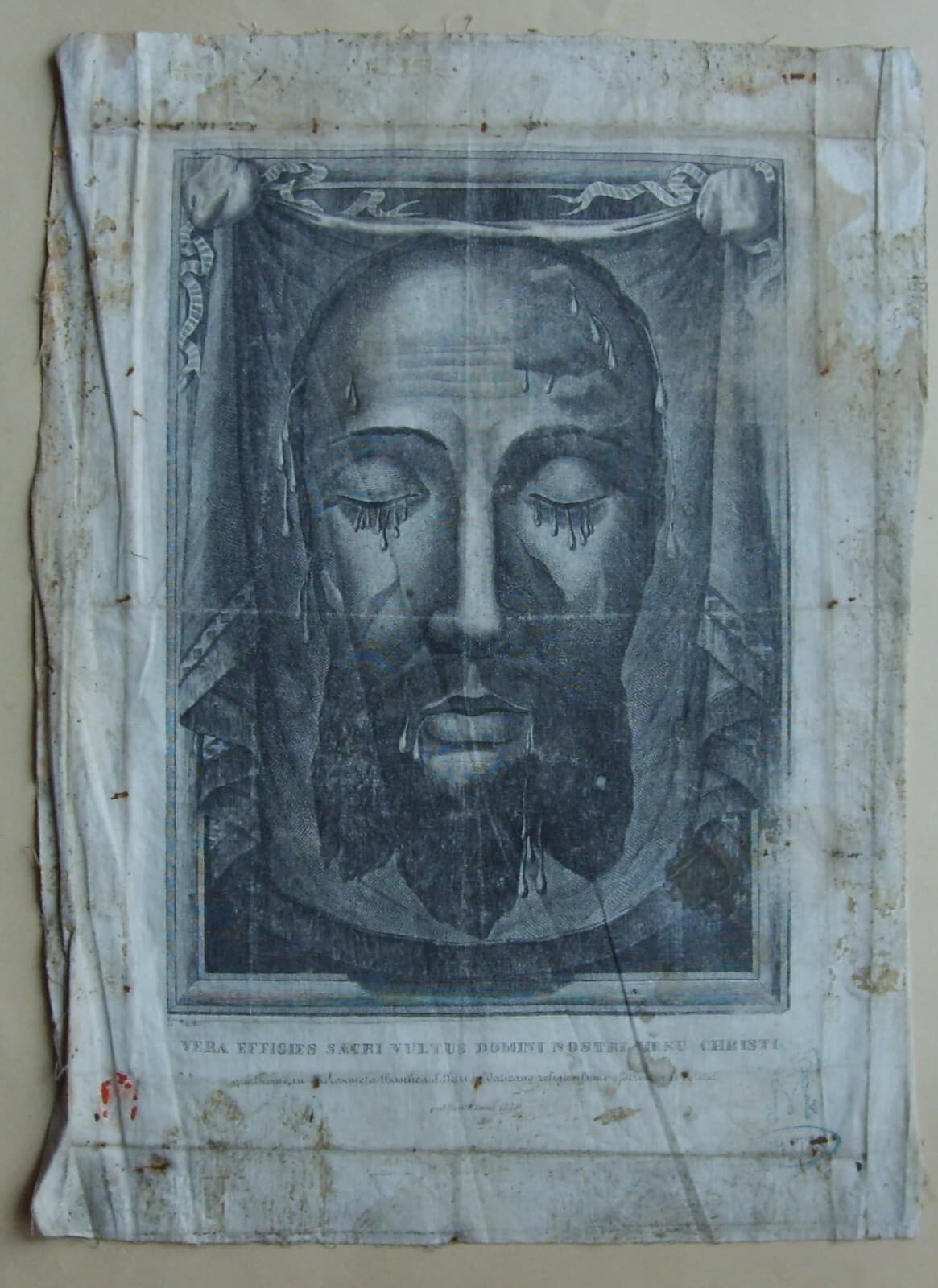 Arte Popolare Devozionale: Volto Di Cristo (Sindone). Antica Incisione Su Tela, N. Banzo