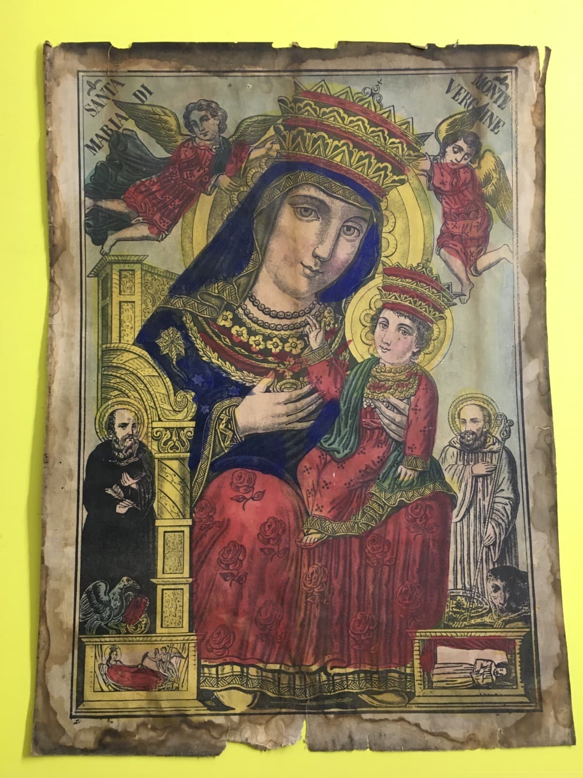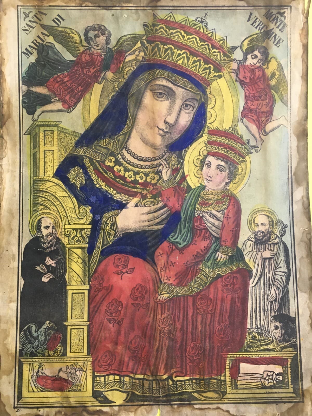 Antica Stampa Popolare Devozionale Madonna Di Montevergine Irpinia