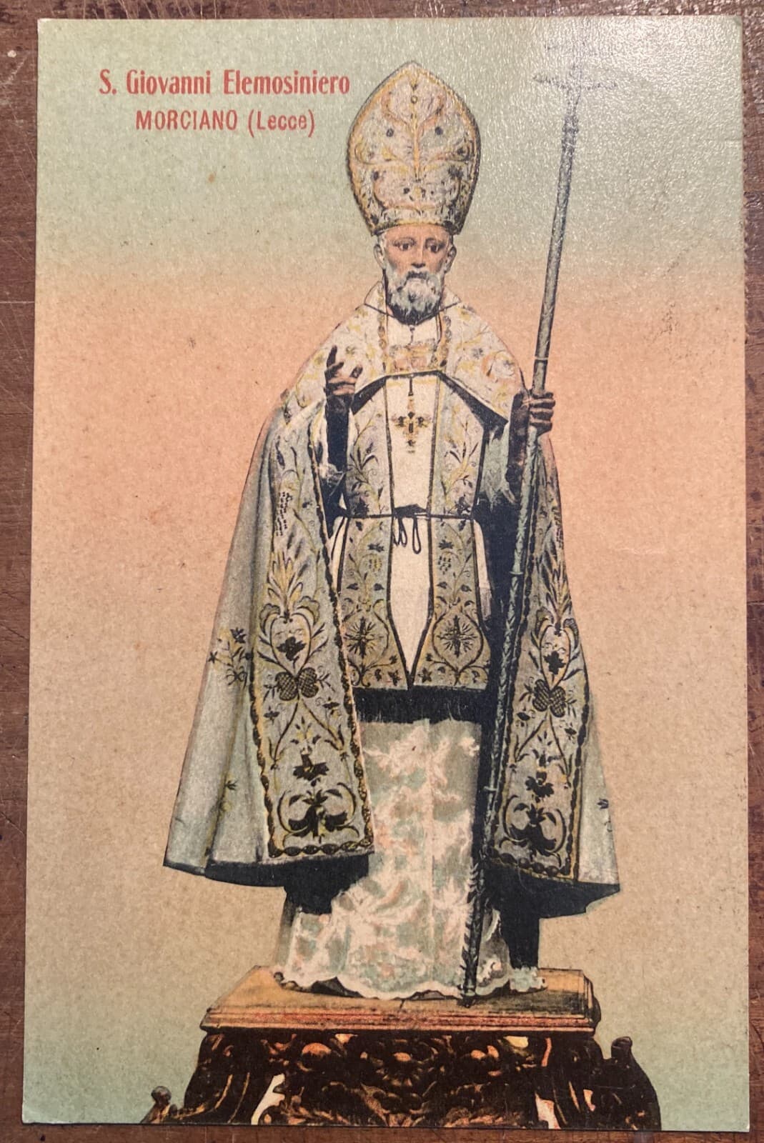 Antica Stampa Popolare Devozionale San Giovanni Elemosiniere Morciano Di Leuca (Salento)