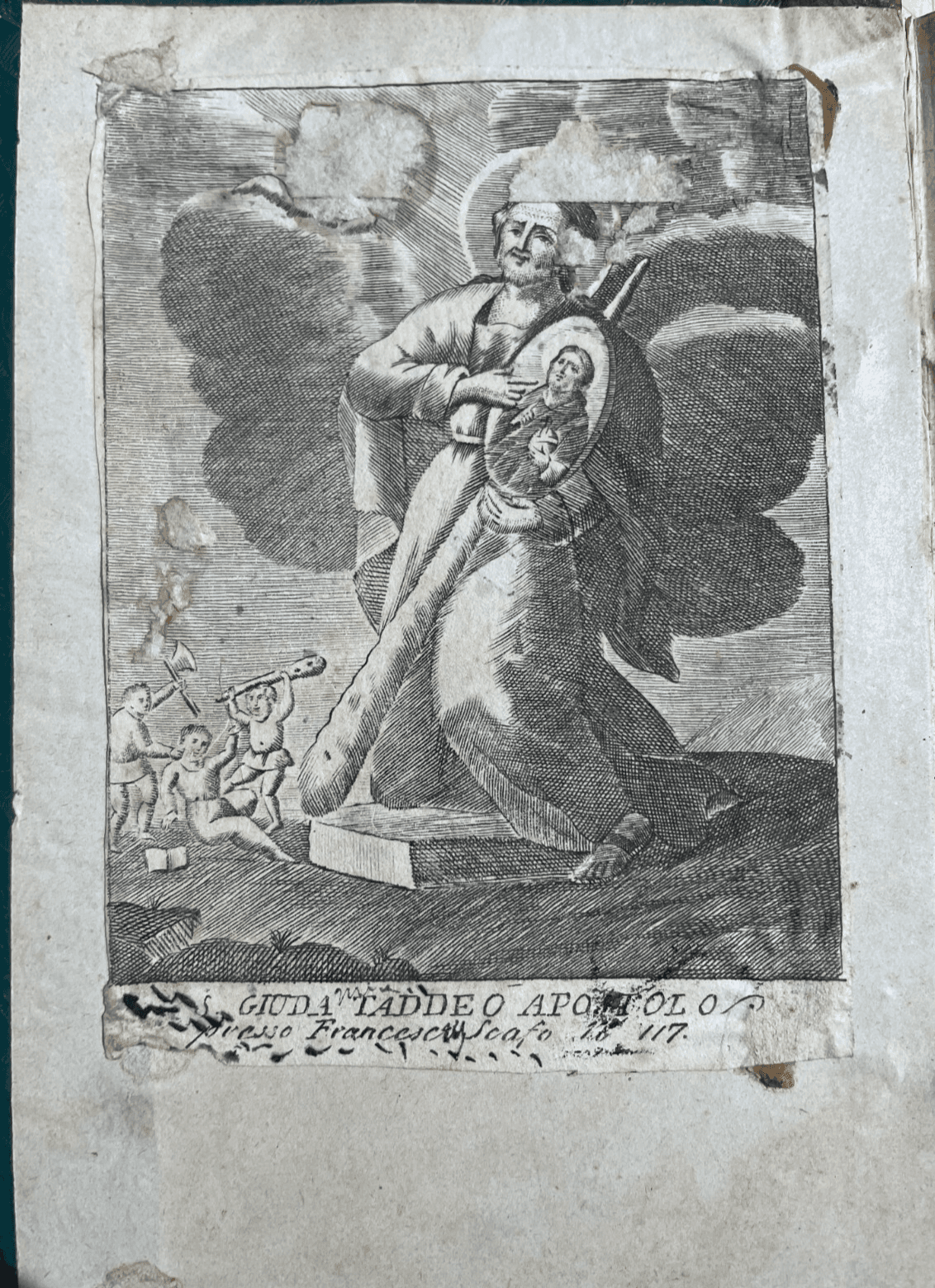 Antica Stampa Popolare Devozionale: Giuda Taddeo Apostolo, Incisione Napoletana