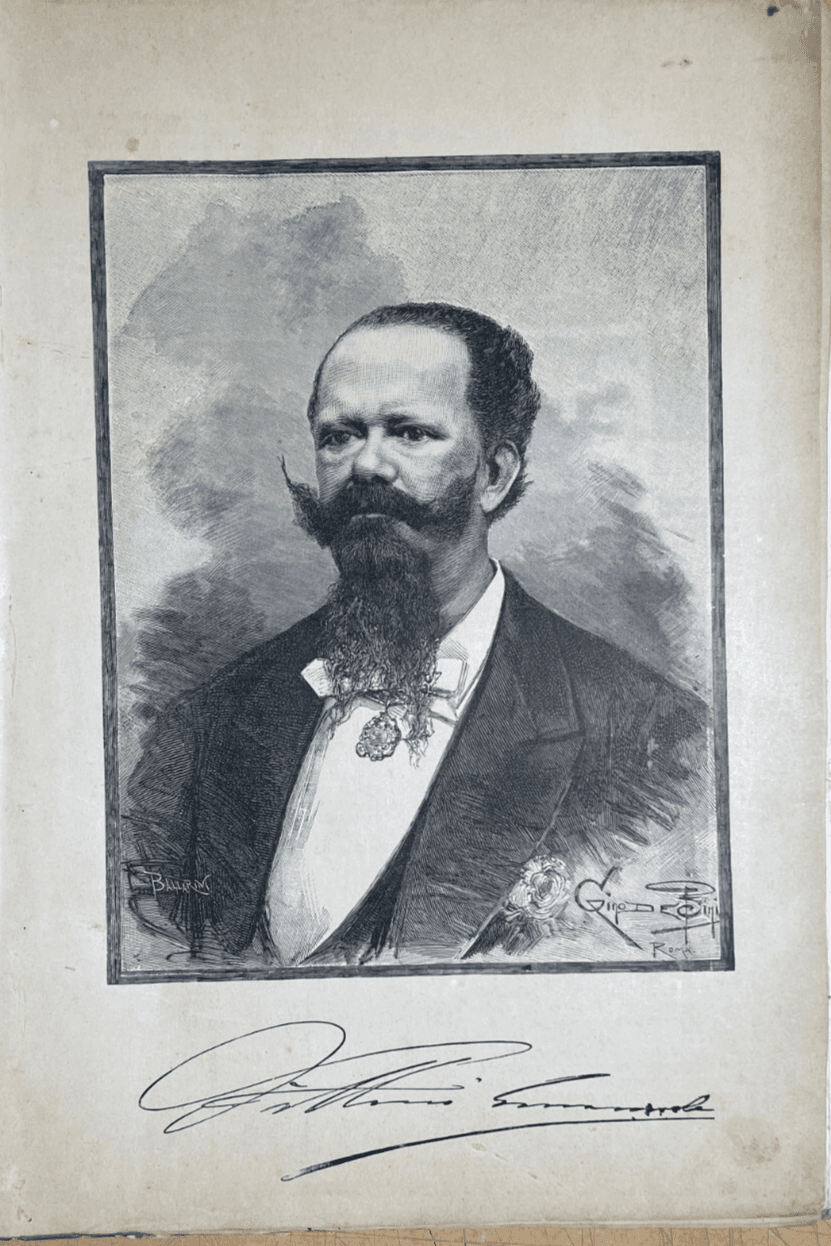 Araldica Savoia: Re Vittorio Emanuele, Antico Ritratto Stampa Artistica Bini, Roma