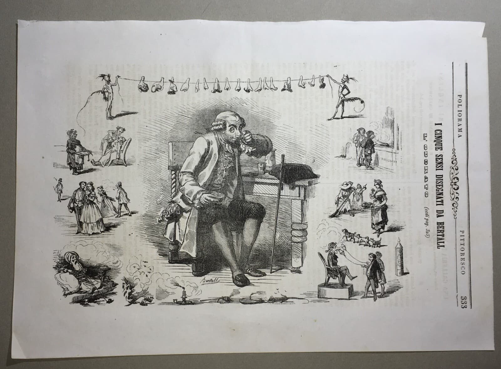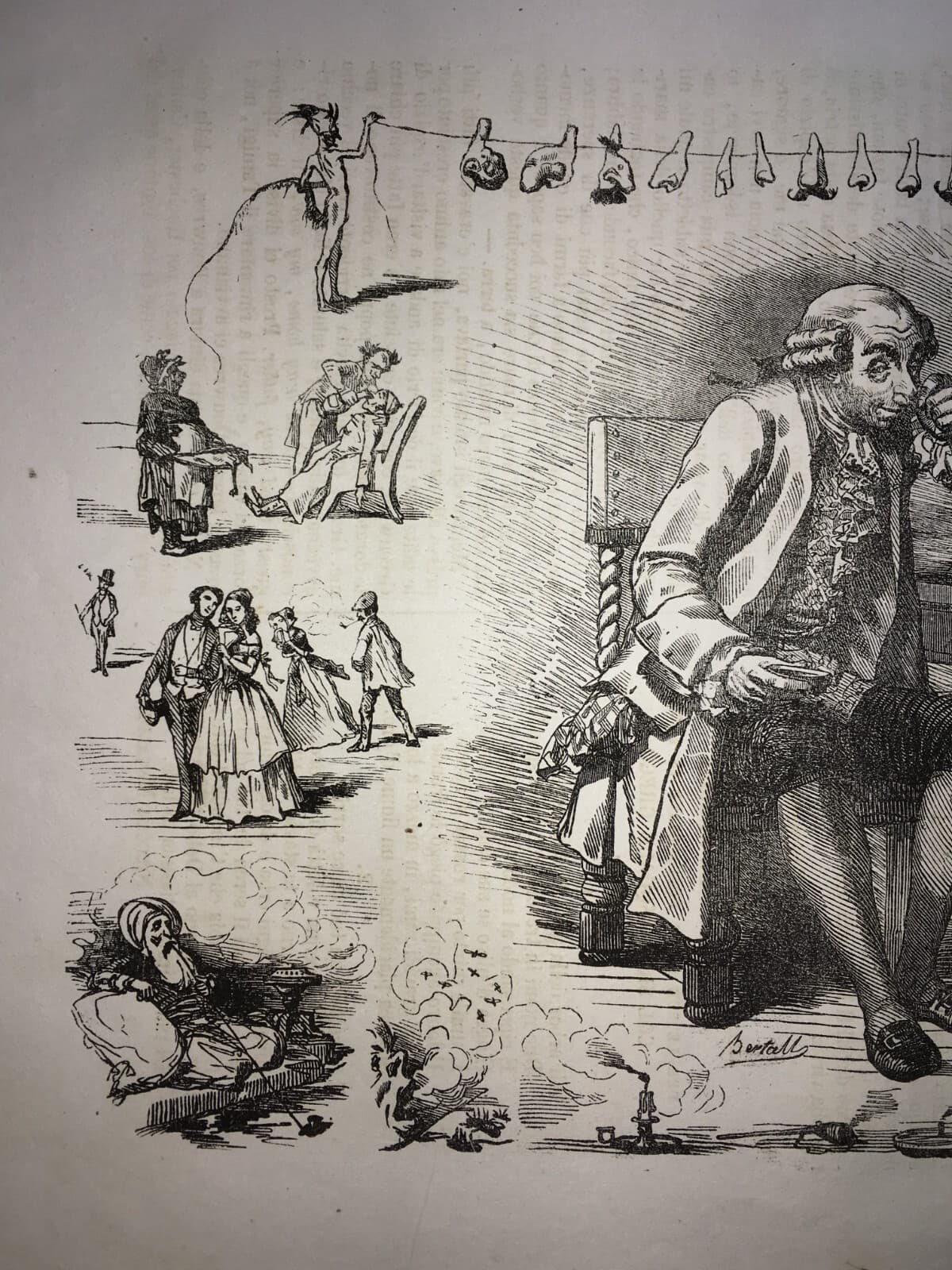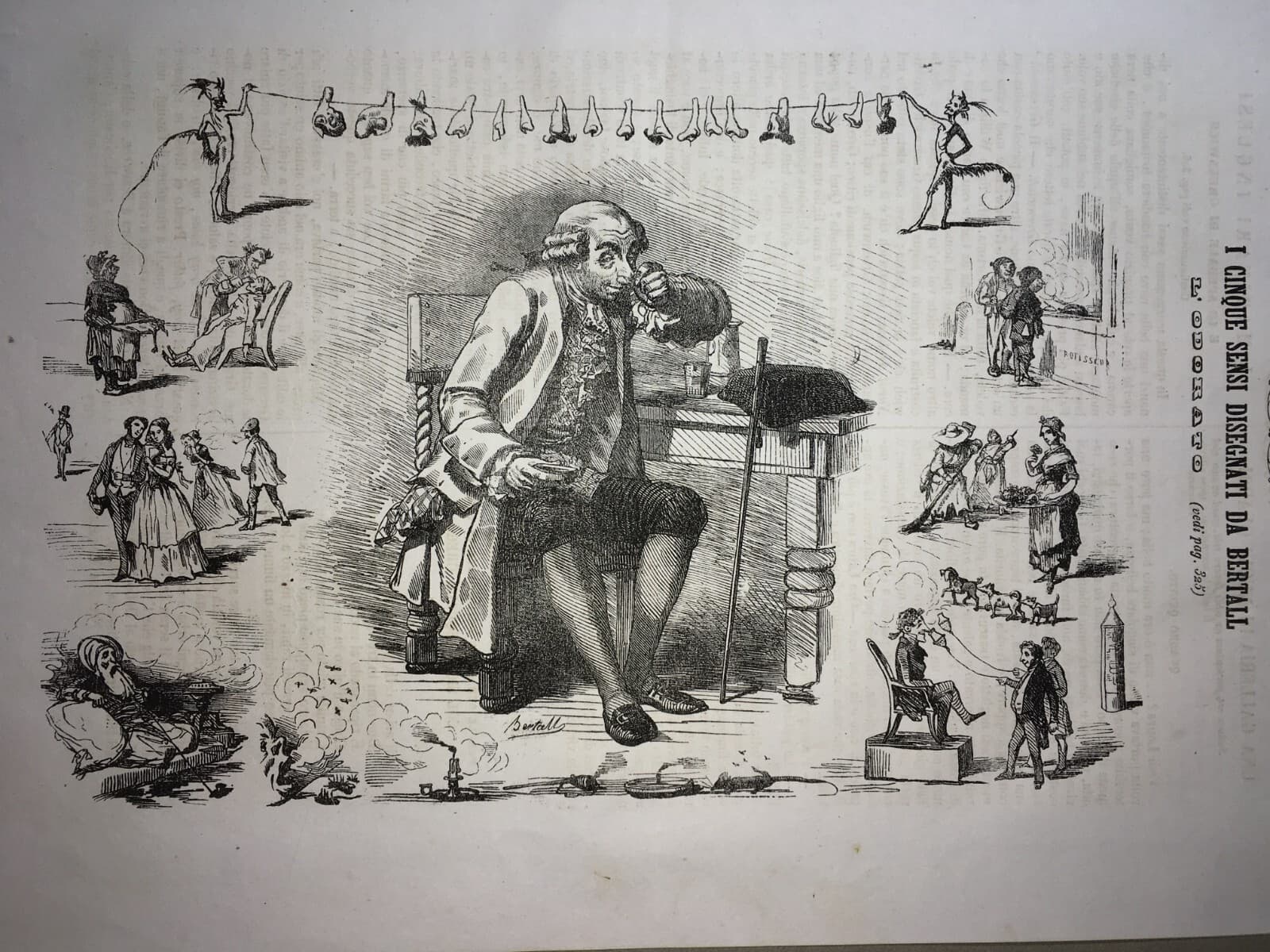 Arte, Umorismo, Caricatura, Illustrazione Antica: Bertall, I Sensi, L'Odorato, Naso E Nasi