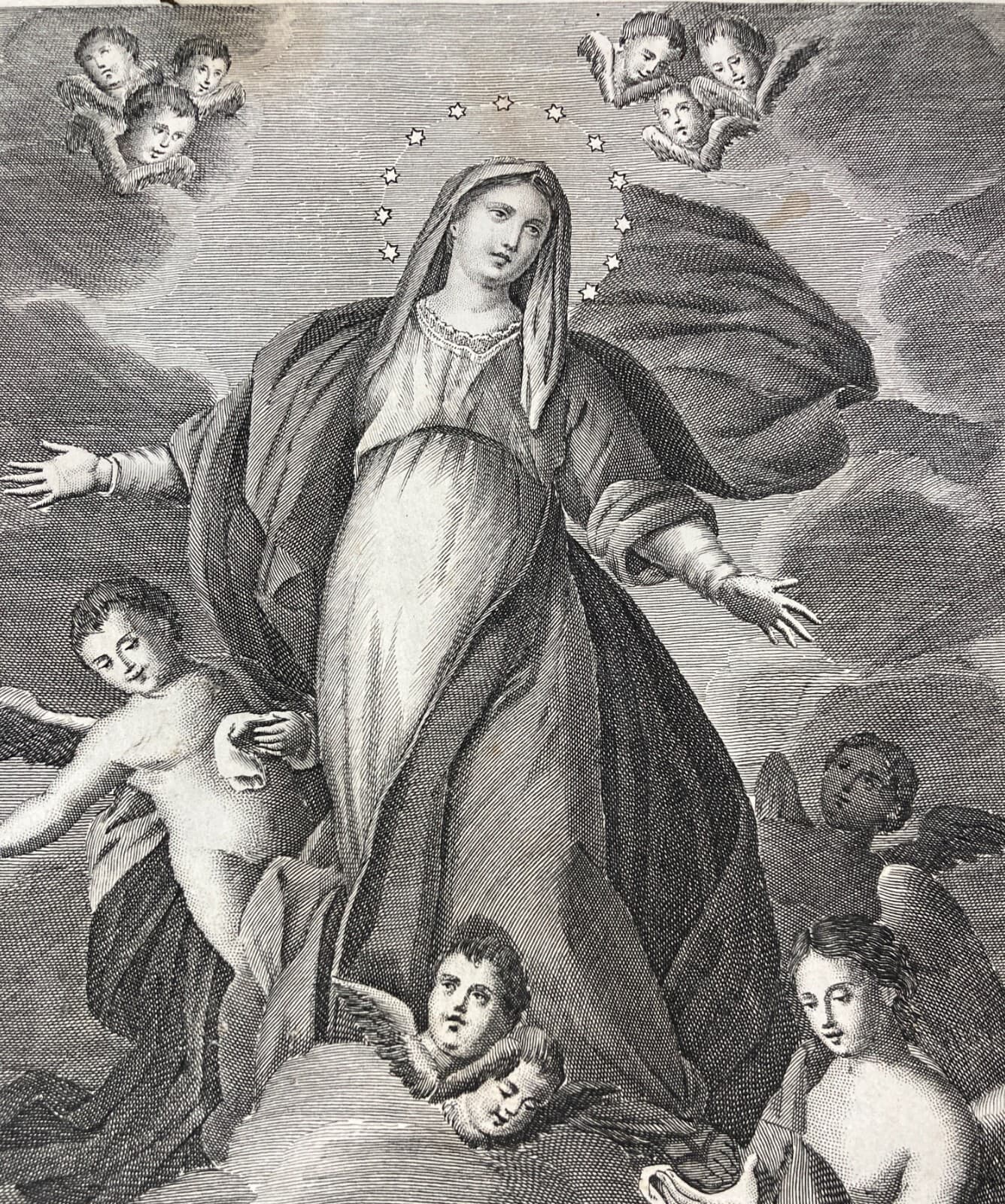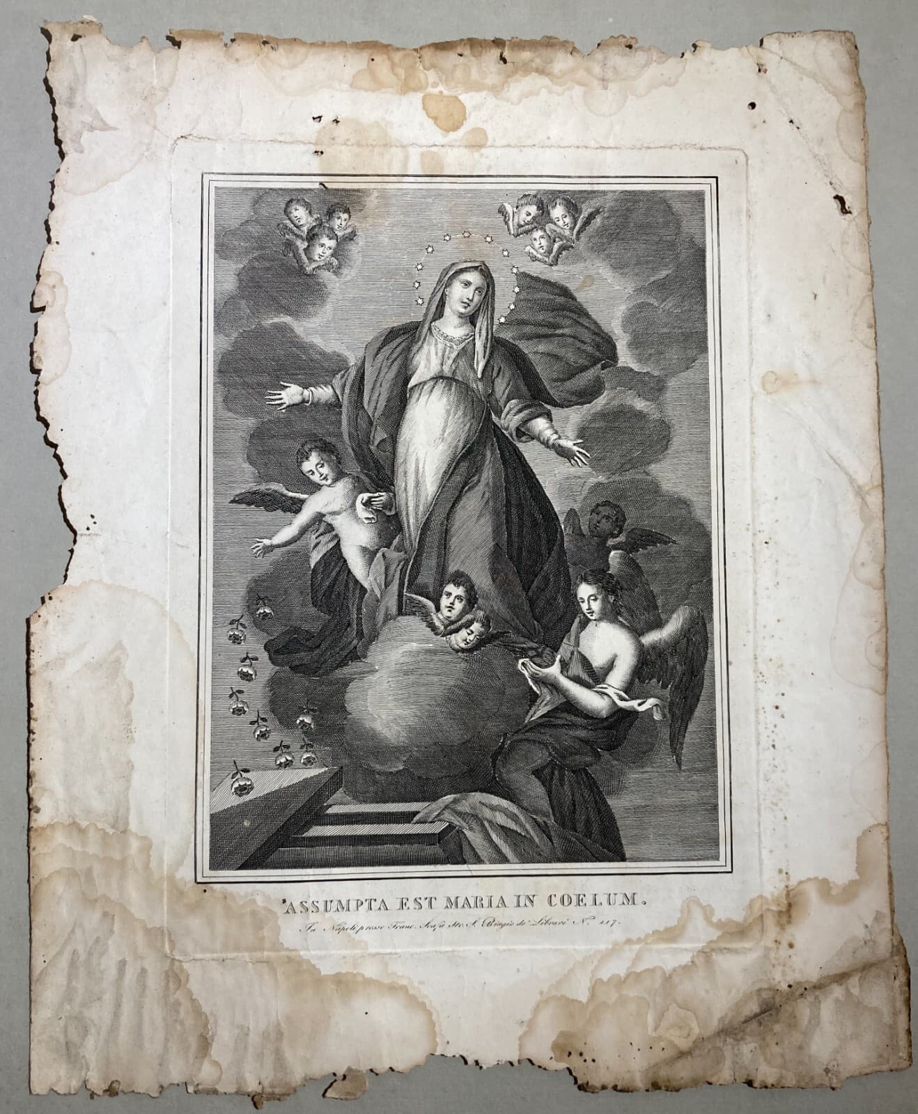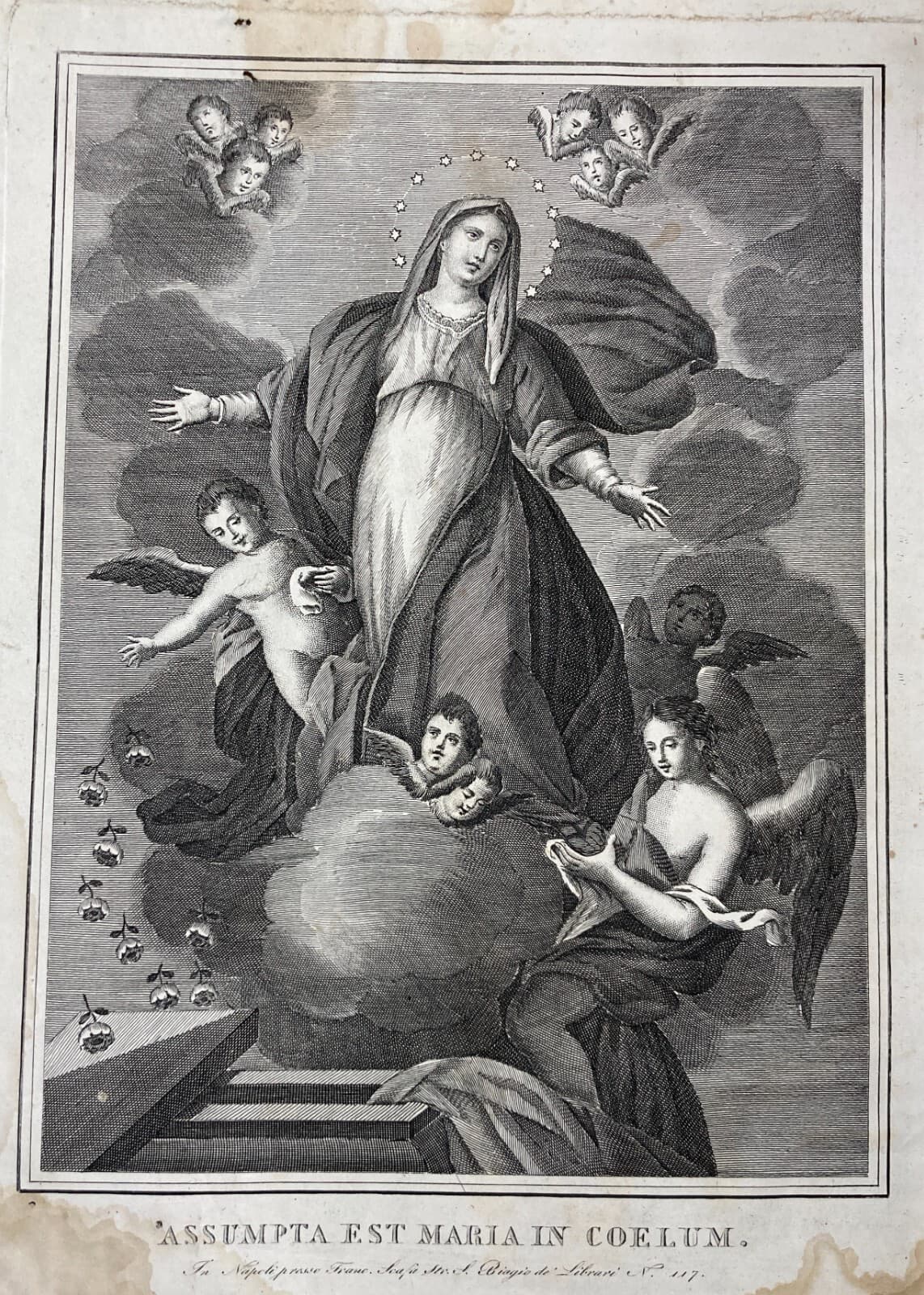 Arte Popolare Devozionale: Assunzione Della Madonna. Incisione Antica Di Francesco Scafa
