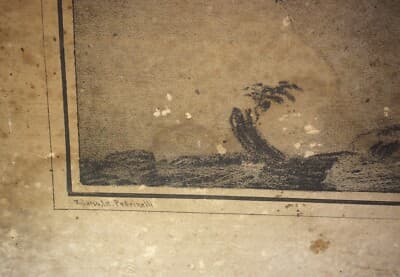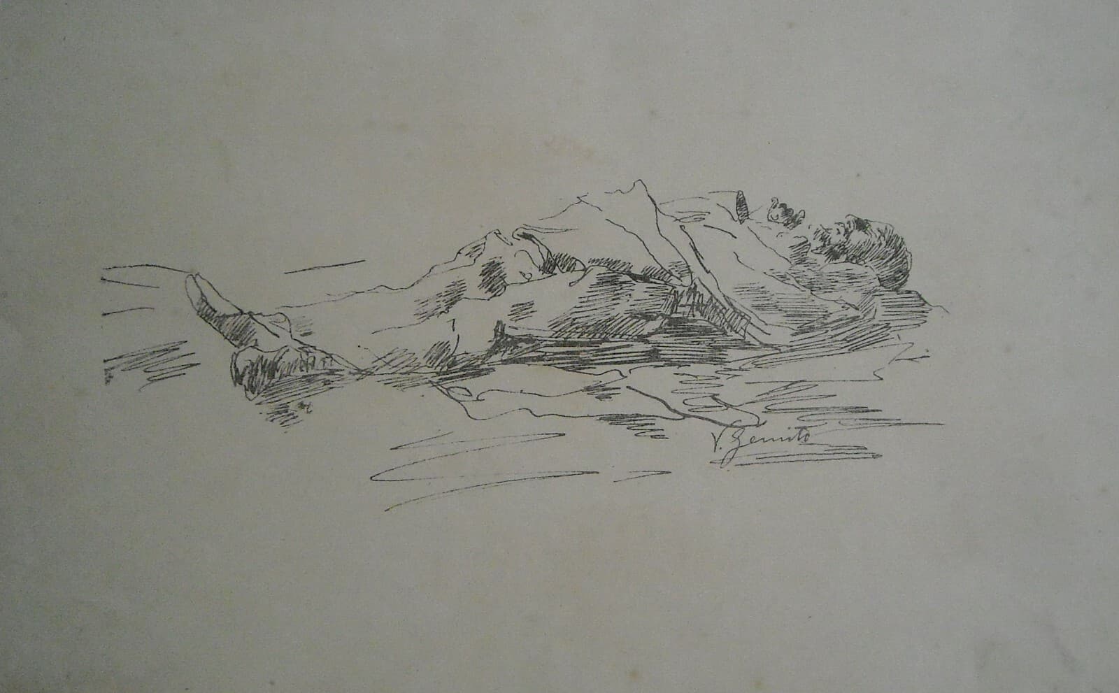 Vincenzo Gemito: Antica Stampa Di Uno Schizzo Decorativo Dell'Ottocento