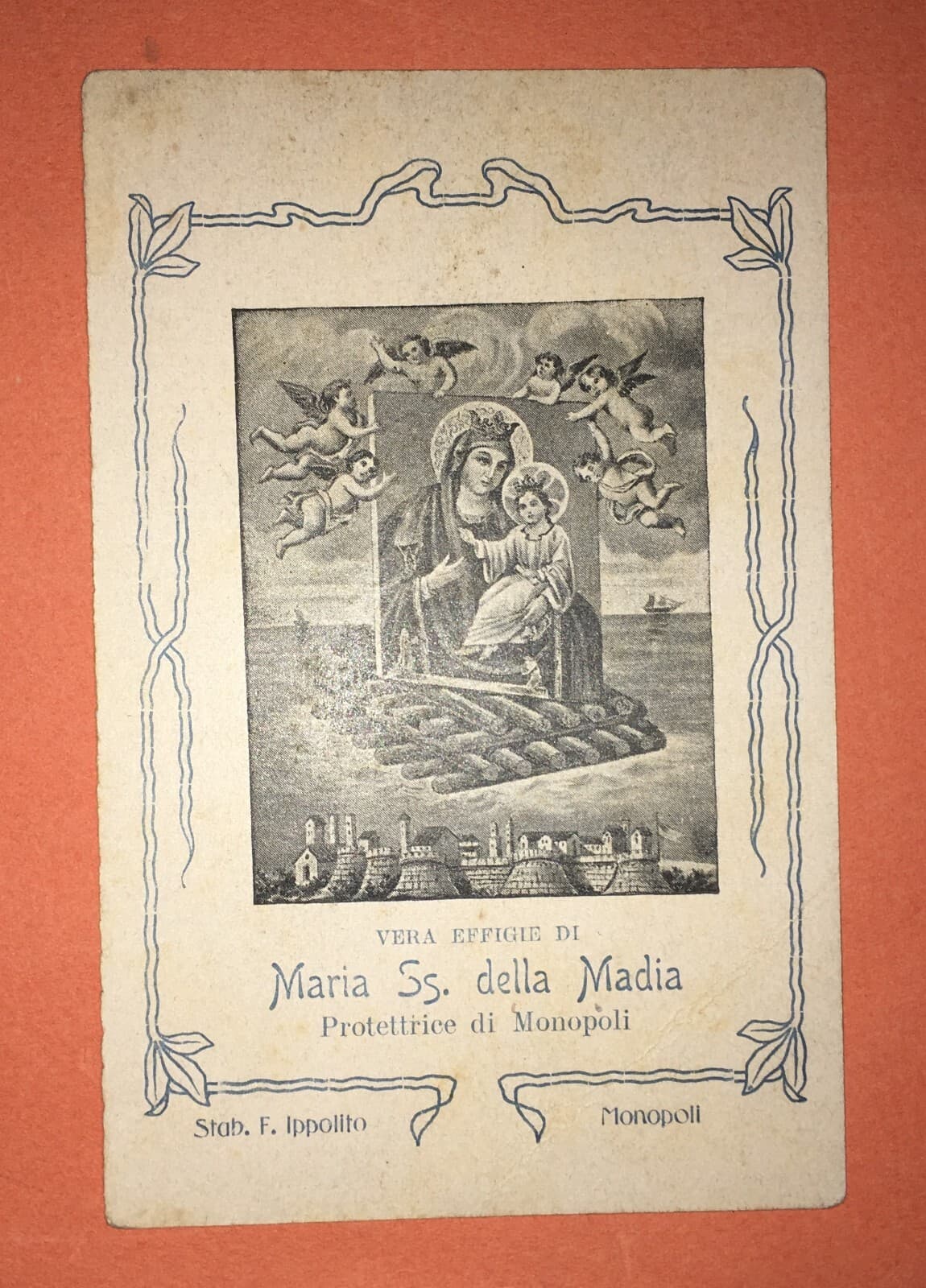 Antica Stampa Pubblicitaria Del Fotografo Intorcia A Benevento Con Immagine Devozionale d'Epoca