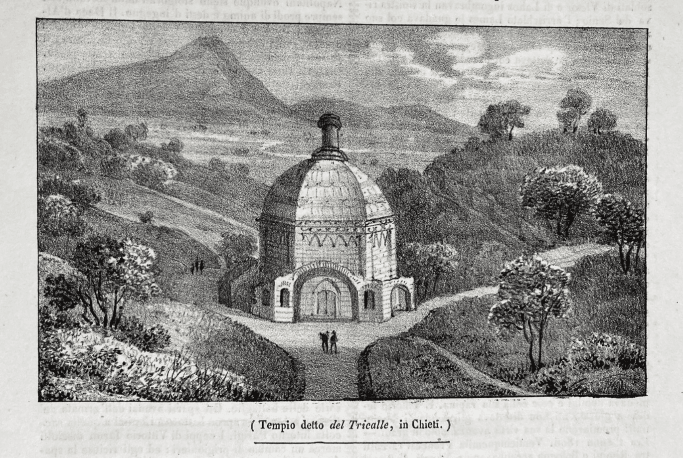 Abruzzo, Chieti, Tricalle. Antica Veduta Con Tempio, Stampa Litografica, Cirelli, 1800.
