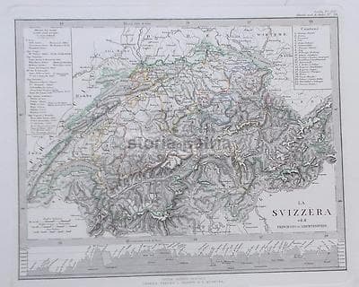 Svizzera, Liechtenstein E Cantoni Con Orografia Alpina (1869)