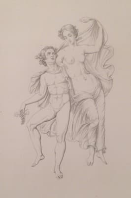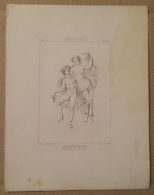 Arte A Pompei: Mitologia, Baccante, Fauno, Uva E Vino. Antica Incisione Basadonna, XIX Secolo